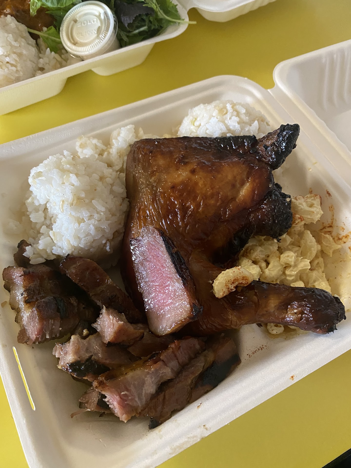 I was skeptical about the locomoco because it's a pork patty with a white gravy but brah, get it with fried rice (if they don't run out), and throw in some kalbi on the side and a side salad with their creamy vinaigrette dressing and you just broke your mouth.