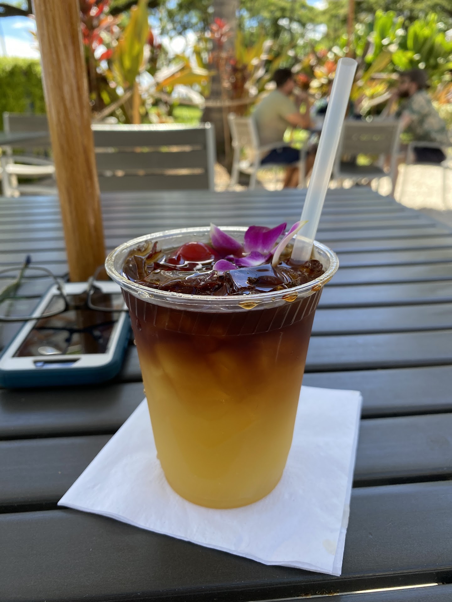 We have been here previously. They make good tropical drinks and have a good military discount. The times we went this time, they were quite busy so the service was so-so, but the atmosphere is really nice and has a great beach view from the tables. If you have a military ID this is the best place to get yummy drinks for less than you can get them elsewhere! Let it be known there is no food served here and you must go around the corner to the Hale Koa’s quick service location.