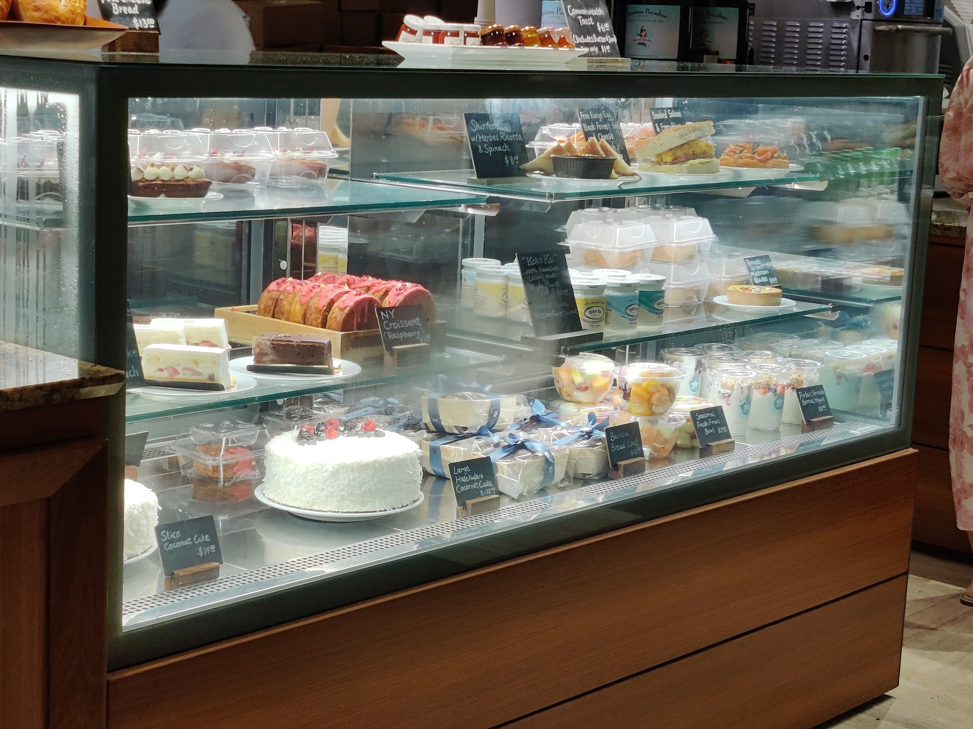 For one small skinny piece of coconut cake it's $14 USD, a small round 4 inch quiche itself with spinach and mushrooms $9, sticky cinnamon bun $7.50, drip coffee at $4.50, and a small round curry bun $7. Everything tasted fine and fresh but it does NOT have good value at those exorbitant prices they charge for what it is worth. Lastly, if you have several pastries, then it's $1 extra for the box.