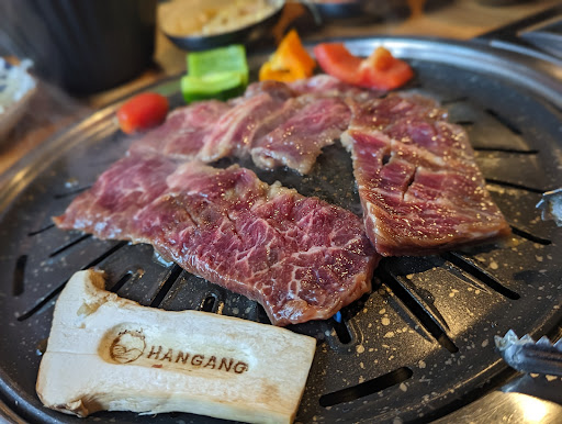 Read moreTwo 👍👍 up for HANGANG. If you enjoy authentic Korean Barbecue you will love this restaurant. The food is elevated by the taste, ambiance, presentation and variety of the menu to make this a worthwhile dining experience. Our party of 3 chose the medium course menu and were more than satisfied with the amount of food that came. The meat came out with the Hangang name stamped on a piece of beef. The cuts of meat melted in your mouth. There were ten different dishes of banchan from Kim Chee, nammul, mushrooms and choi sum. There was also a course of soup or noodles. Two of us tried the soondabu and my friend tried the naengmyeon cold noodles. The amount of tofu they used was generous in the soondabu and the noodles were refreshing in the icy cold broth. The soup portions were meal sized and you could just have the soup and a bowl of rice for a meal by itself. Everything was delicious. Ambiance: * What a pleasant surprise it was that the restaurant was not smoky! The restaurant was clean and there was not a trace of grease. The decor was modern with a mix of booths and tables. There is ample parking and ADA compliant stalls that are steps away from the doorway of the restaurant. Cost: * The course menus range in price from forty to ninety $. It can seem pricy but if you were to order everything separate it would be much more expensive. The course menus have a wide variety of menu choices which would satisfy anyone. The serving sizes were perfect for our party. Dessert is included.