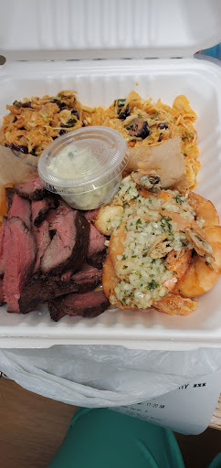 If you’re not starving, you could easily share a combo plate. On my most recent visit, I was traveling solo and didn’t want to carry leftovers so I just asked for one scoop fries rice and 1/4 lb of steak. The bowl and a soda cost about $12 and I was satisfyingly full with the meal. Don’t forget to get one of the sauces - I’m a fan of the horseradish one, it’s pretty mild and won’t make your eyes water.