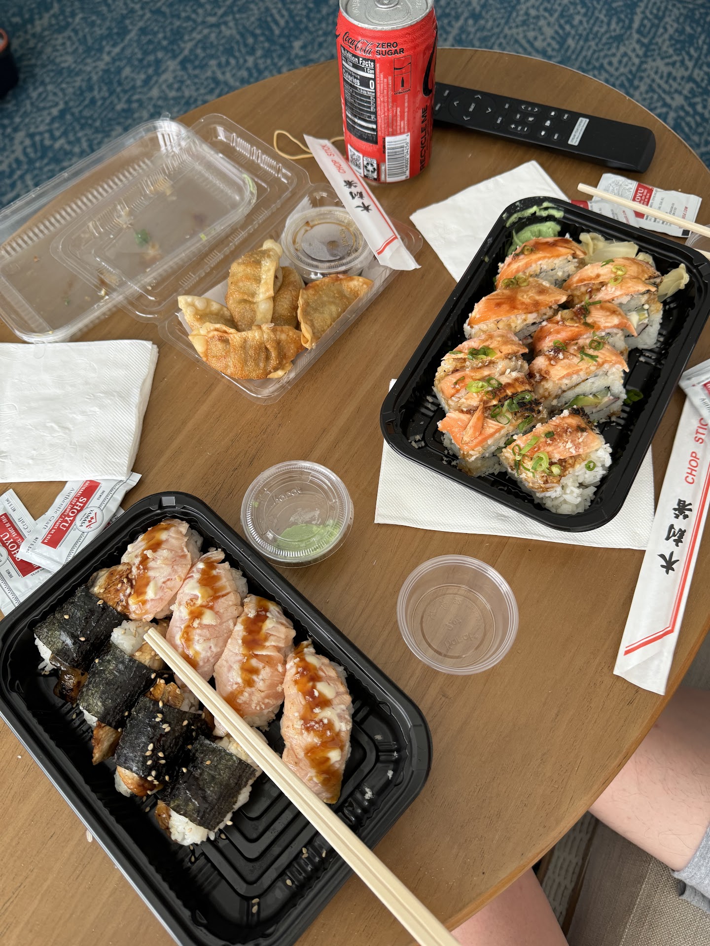 AVG Wait time: ~10 - 20min (can be higher depending on # of folks ordering) Food Quality: ★★★★☆ Food Taste: ★★★★★ Price: ($) Very Affordable for Sushi Service: Nice service, accomadating to requests. Convenience: The shop is in a little pocket spot with a ice drink + coffee / american food shop in the same slot. Seating isnt an issue, albeit...