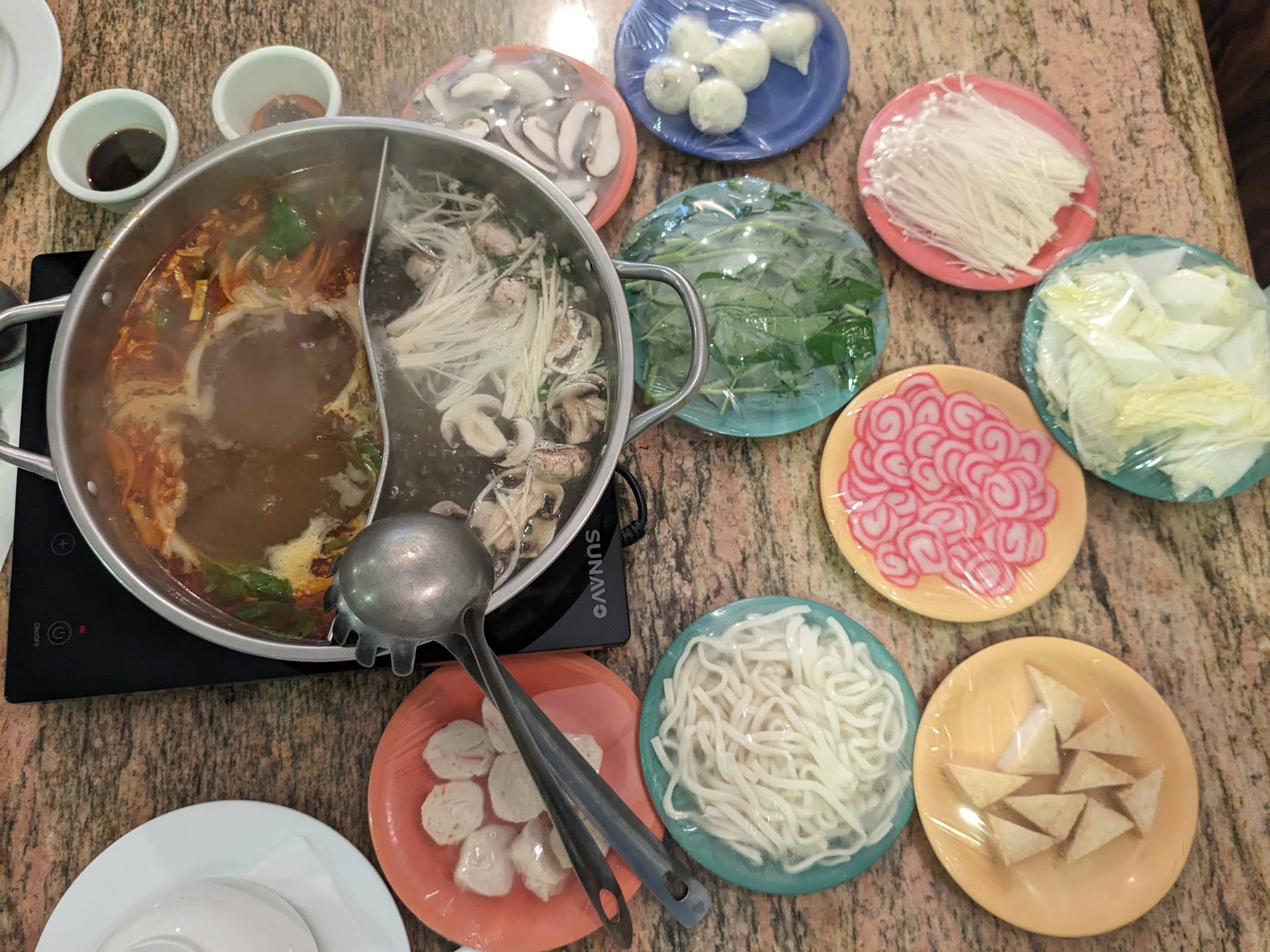 I absolutely loved this location. It is a cozy place located in Mccully shoppijg center fronting Taco Bell. After conducting a Google search to see what hot pot restaurants were open. This was the only one open for dine in. Upon walking in there were 2 families dining in. We were immediately Greeted with a warm smile. We were seated at the 3 will on the left. The rules are simple so make sure you read the rules. Each table has a set if instructions. Follow them please. We immediately placed our order. We had 1/2 kimchi 1/2 miso soup. This location charges by the plate color. They have a wide variety of meat selection and help yourself selection. You must use gloves that they provide when helping yourself to the items in the icebox. Rice is provided just ask. I love spicy food and the kimchi broth was perfect. The owner will ask how spicy you want it. You can tell that the workers take pride in their restaurant and providing a clean and sanitary service for customers. Down to the minor details. I am so glad that we came here to have lunch. The owner was so diligent at refilling our waters in the restaurant. Never did our water glass go half empty. What is cute also is every table has its own trash can. My suggestion is if you make a mess clean your mess. The trash can is at your disposal. I am so blessed to have eaten in a clean and sanitize environment using no masks. I definitely recommend this location if you are intrested in dining in period but what is most important is the care and detail that the employees put in to make sure we have a...