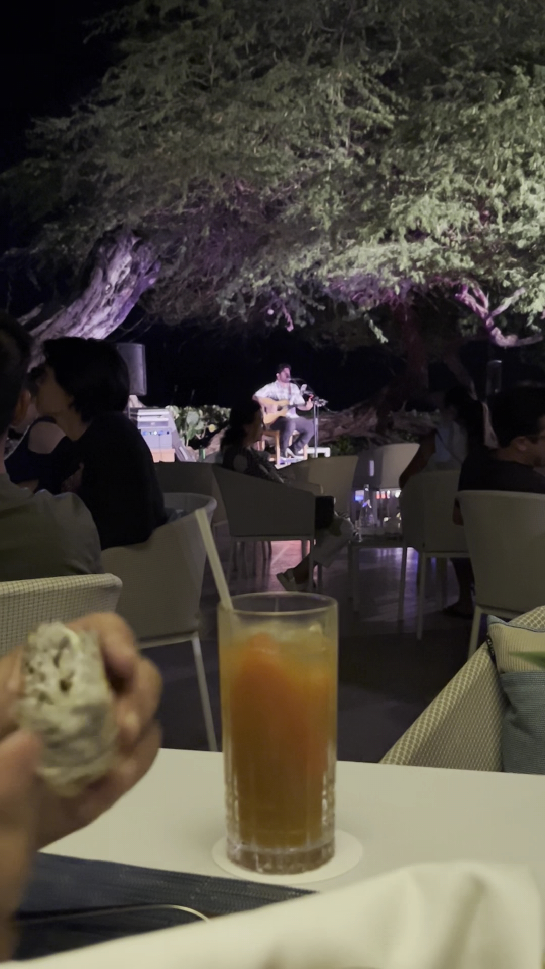 Once I grabbed our drinks, we were called for our table and they placed right up front. The performers even acknowledged our arrival over the mic and wished us a goodnight after the performance as if we’d met previously. He customized the menu to accommodate our vegetarian diet and we ordered another Mai Thai. It was a very warm environment and the singing and dancing were soothing. Perfectly matching the backdrop of a Honolulu sunset. Our server was amazing as well. Offering information about the mesquite tree, history of the main house and even suggested a constellation app as we gazed at the stars during intermission.