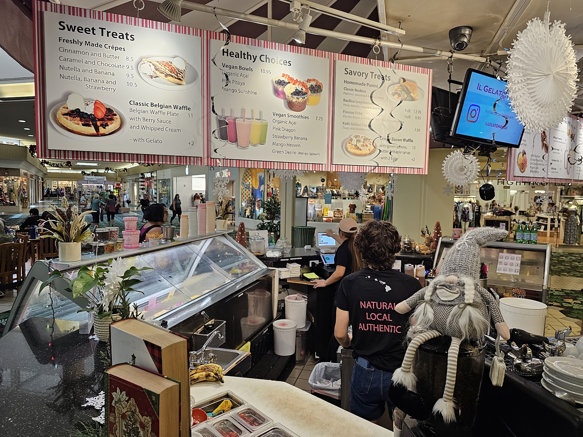 Read moreAbout time a do a review because I've been going here for the longest time ever. I really love place! Nice spot for gelato, acai bowls, some 10/10 coffee, and food. I mostly go here for coffee and scoops. The brand they use is Illy, which is super good (I worked at Starbucks for a bit, and I can promise you it outranks them by far.) The gelato is super yummy too! I like that they have different flavours of the month, so it gives you a good reason to come back and see what they got. Everything is all made with local ingredients on island, so it's a nice change from everything else. All of the servers there are incredibly friendly and wonderful people to talk to as well. The bar has seating too, so if you need a place to sit while you kill time, or are doing homework, or just wanna chill and enjoy something yummy, you don't have to fight for tables in the mall. If you ever pass through, I'd recommend stopping by and picking...