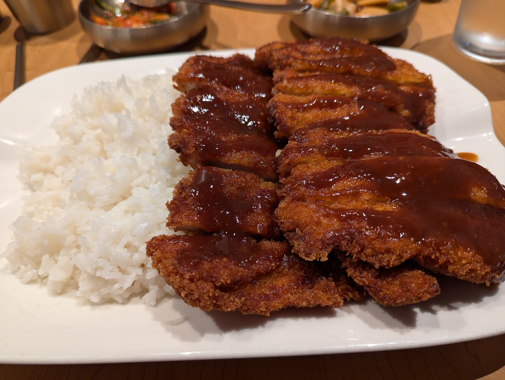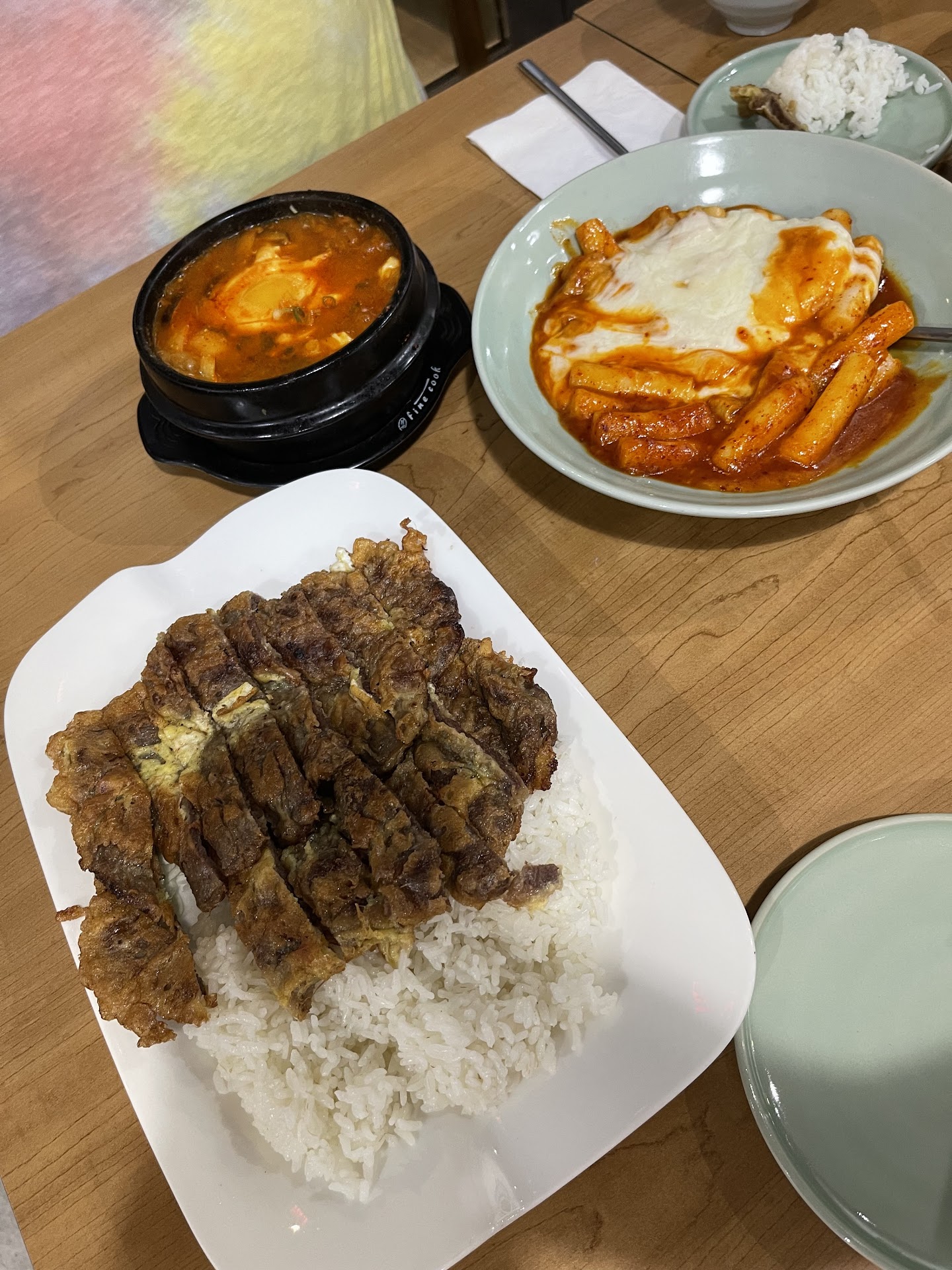 The Bulgogi soup was amazing. Lots of yummy stuff in a piping hot broth that was slightly spicy with a sweetness from the bulgogi meat. It was over the top good. Also ordered the mussels in broth which was a perfect light broth with seafood flavors from the mussels which were generously portioned.