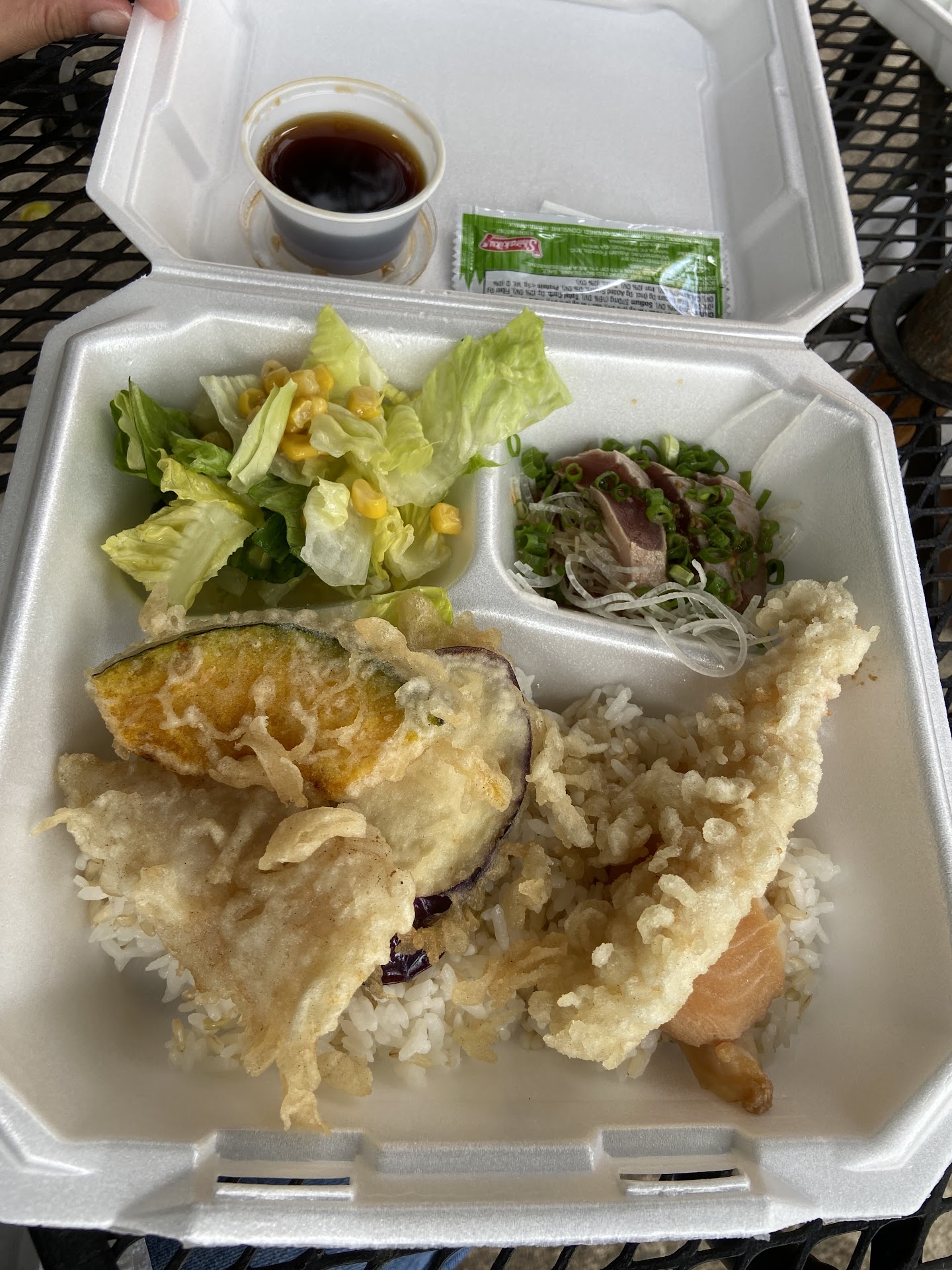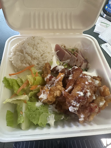 Got to try their chicken karaage ahí combo. Wow the karaage was fried to perfection. Hot crispy and juicy, with a sweet drizzle of sauce on top. The ahi was fresh and it’s delicious with the ponzu dressing. A small lettuce salad was included. At least I got a bit of veggies in my meal.