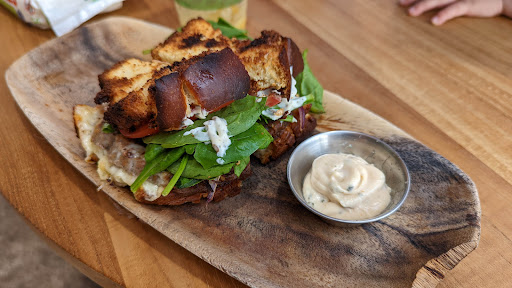 The space is very cozy with a lot of seating, cute swinging chairs, and lovely art. The Spicy Avo toast with an egg was delicious and filling. The line can be a little chaotic and long, but that is to be expected in a popular spot in a major tourist area.