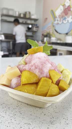 Flavors: Jasmine shave ice with taro (white) and ube (purple) This had a nice floral flavor which paired well with the fresh taro and ube toppings.