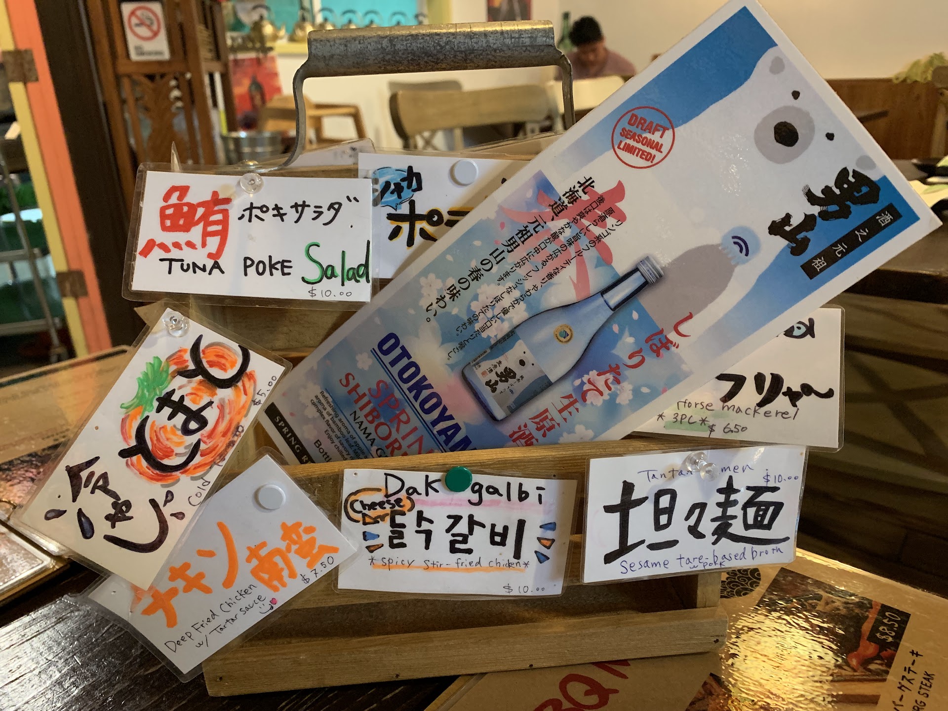 A small, unassuming izakaya tucked into a back alley off of Seaside Ave, Izakaya Pau Hana Base's paper lantern proclaims it "うまい、やすい" (delicious, cheap) and truer words could not be said.