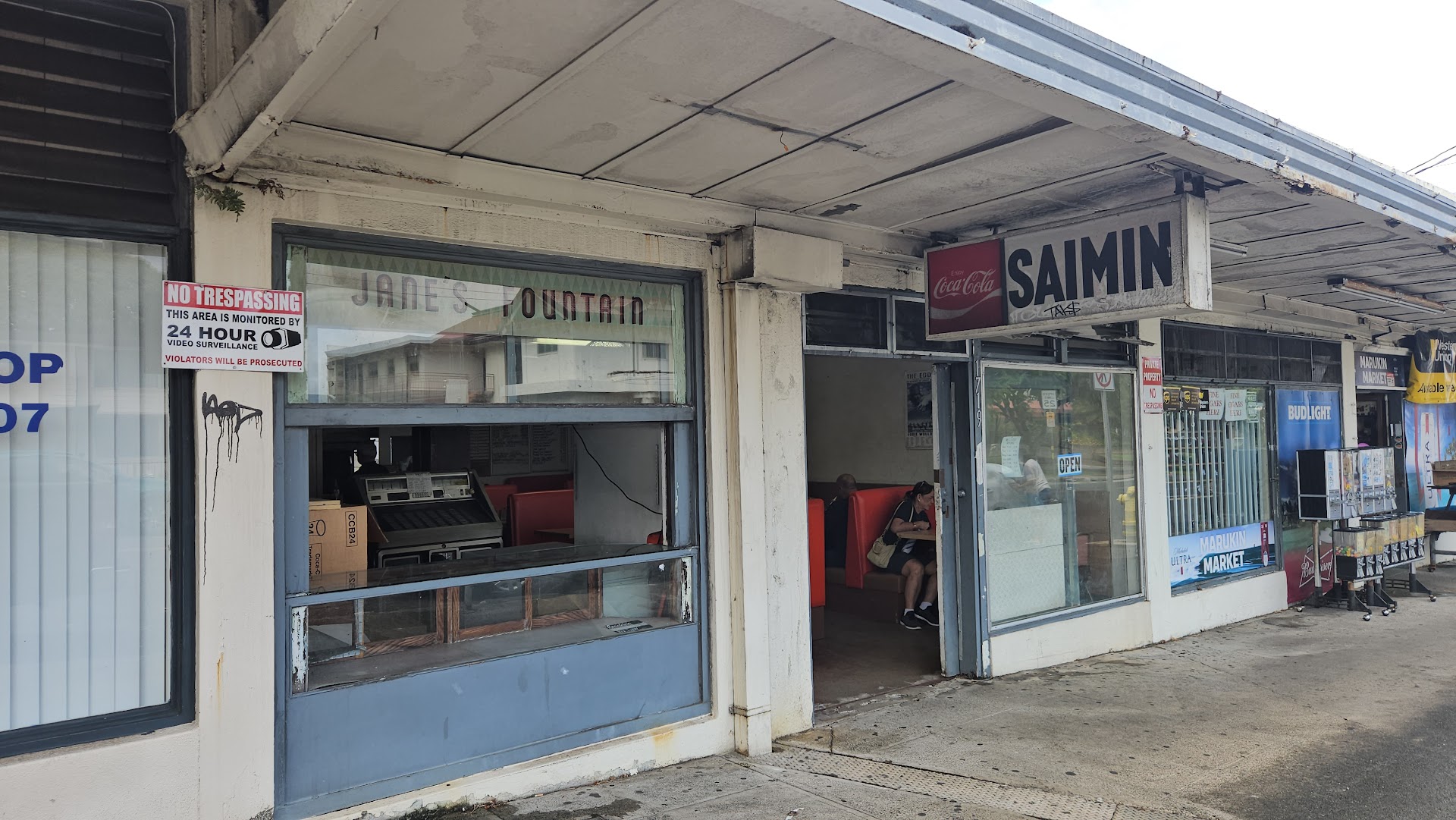 Jane's Fountain is located on Liliha Street. When you head up the hill, its on the right hand side, right before Kuakini Street. You'll see the large 'SAIMIN' sign right outside their door.