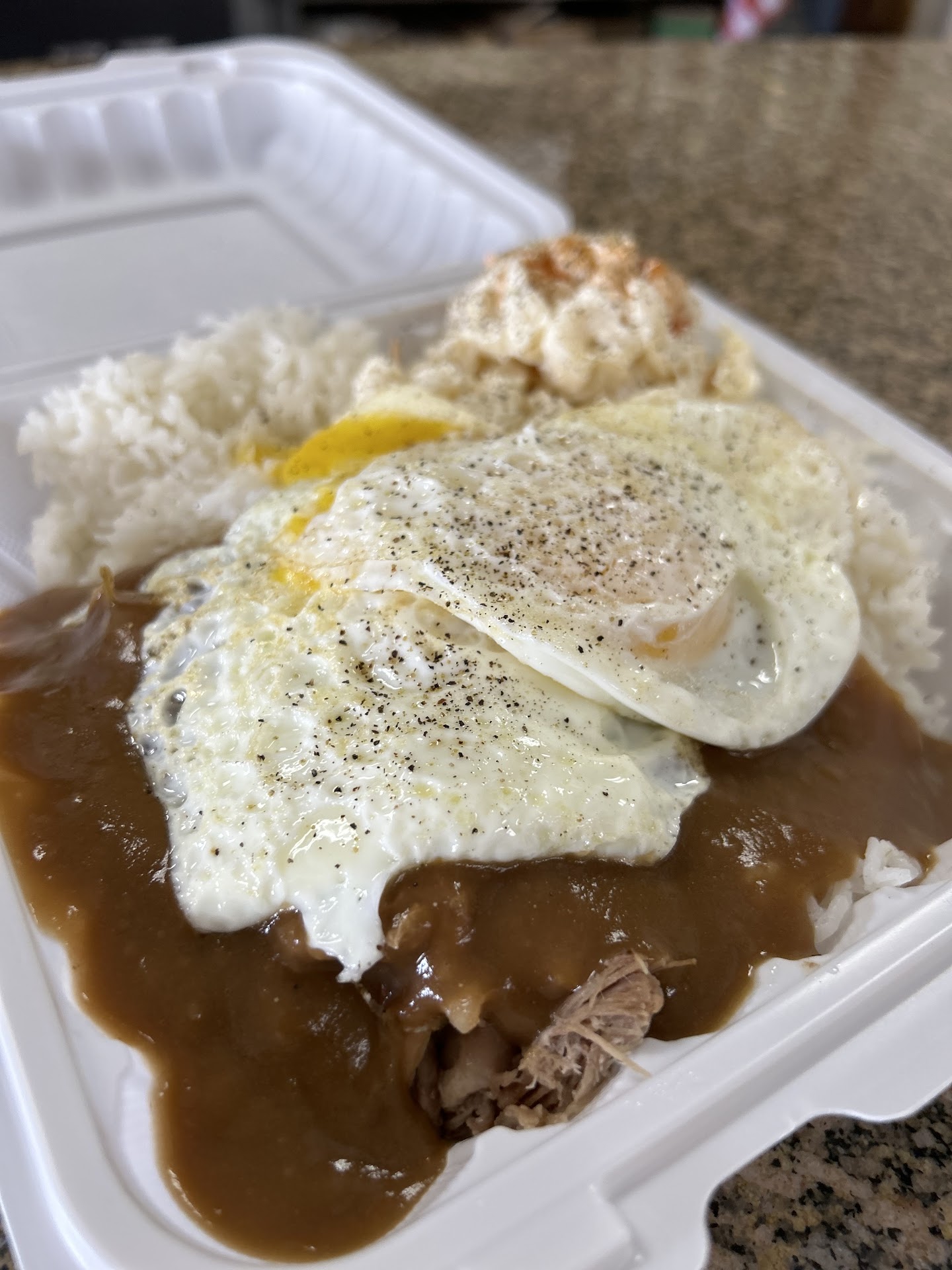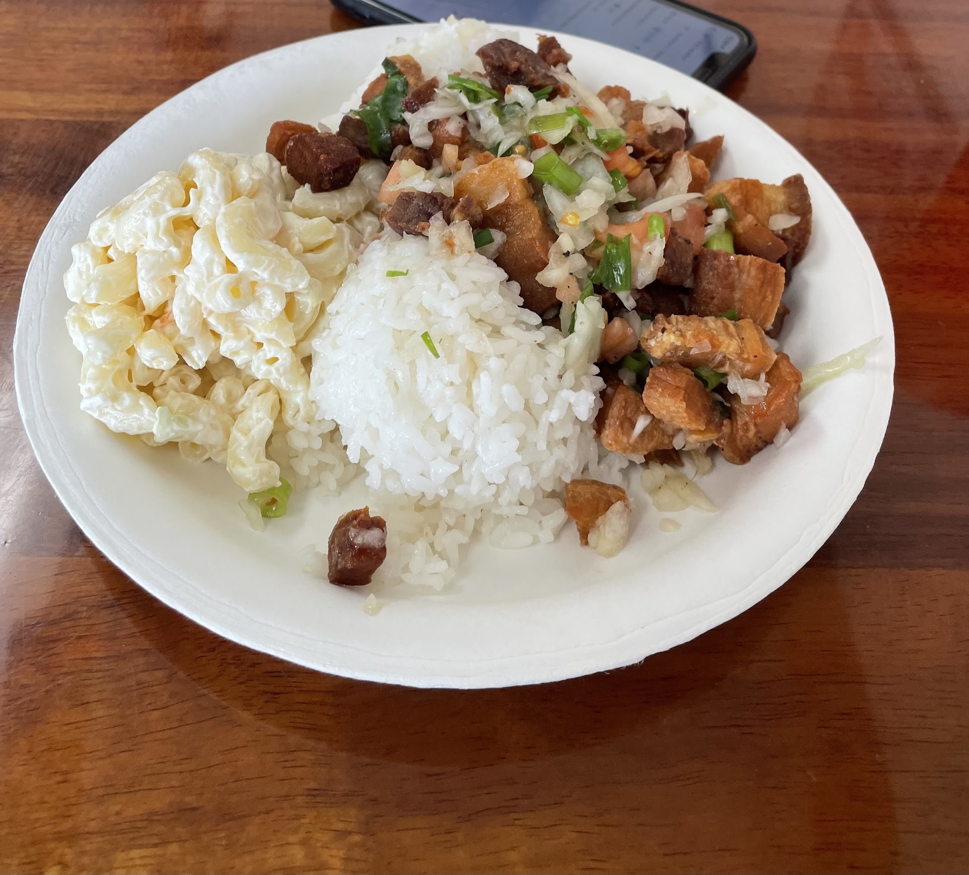 Itās my first time eating here. What pleasant surprise! The dining room is clean and they have a pretty straight forward menu. The front cashier was a local Bruddah pretty much you should be fluent in pidgin English. I went straight for their specials for today I had Pastele stew plate and their Chopped cheese sandwich which is like a Philly cheesesteak sandwich but made with hamburger and a cheese sauce and came with fries. I was weaned on Pasteleās and pastele stew as a baby in Makawao, Maui so the idea behind pastele stew is when you eat it should take you into your deepest memories of pasteles where youāre found in the corner of the restaurant curled over in the fetal position longing for your Porto Rican Gramma even though youāre full blood Japanese. This time was close yet their portions is mean. Then Ithis Chopped cheese burger sandwich didnāt need the tomatoes and chopped lettuce. This need a couple pickle spears or...