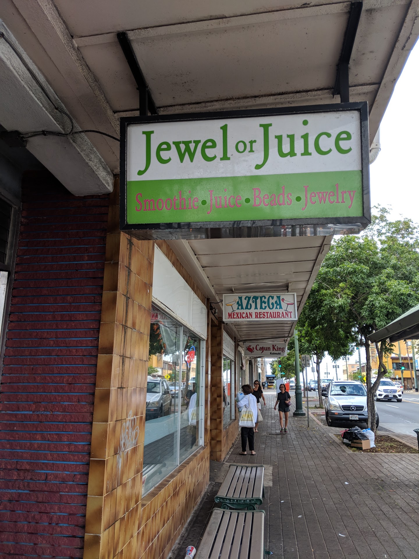 Jewel or Juice in Kaimuki makes the best acai bowls and smoothies that I've ever had. The use fresh, healthy ingredients that blend together beautifully. Their menu is large, and everything on it is delicious. In the mood for tropical flavors? Try the pina colada or guava strawberry smoothie. Feel like you're coming down with something? Time for a cold buster or coco ginger smoothie. Need more greens? Enjoy a green power or orange kale smoothie. Every acai bowl--from the keiki to the honey nuts--is delicious, but my personal fave is the deluxe, which comes with strawberries, blueberries, banana, shredded coconut, the best granola in the world, and honey. There's no better place to beat the summer heat, which is now a year-round...