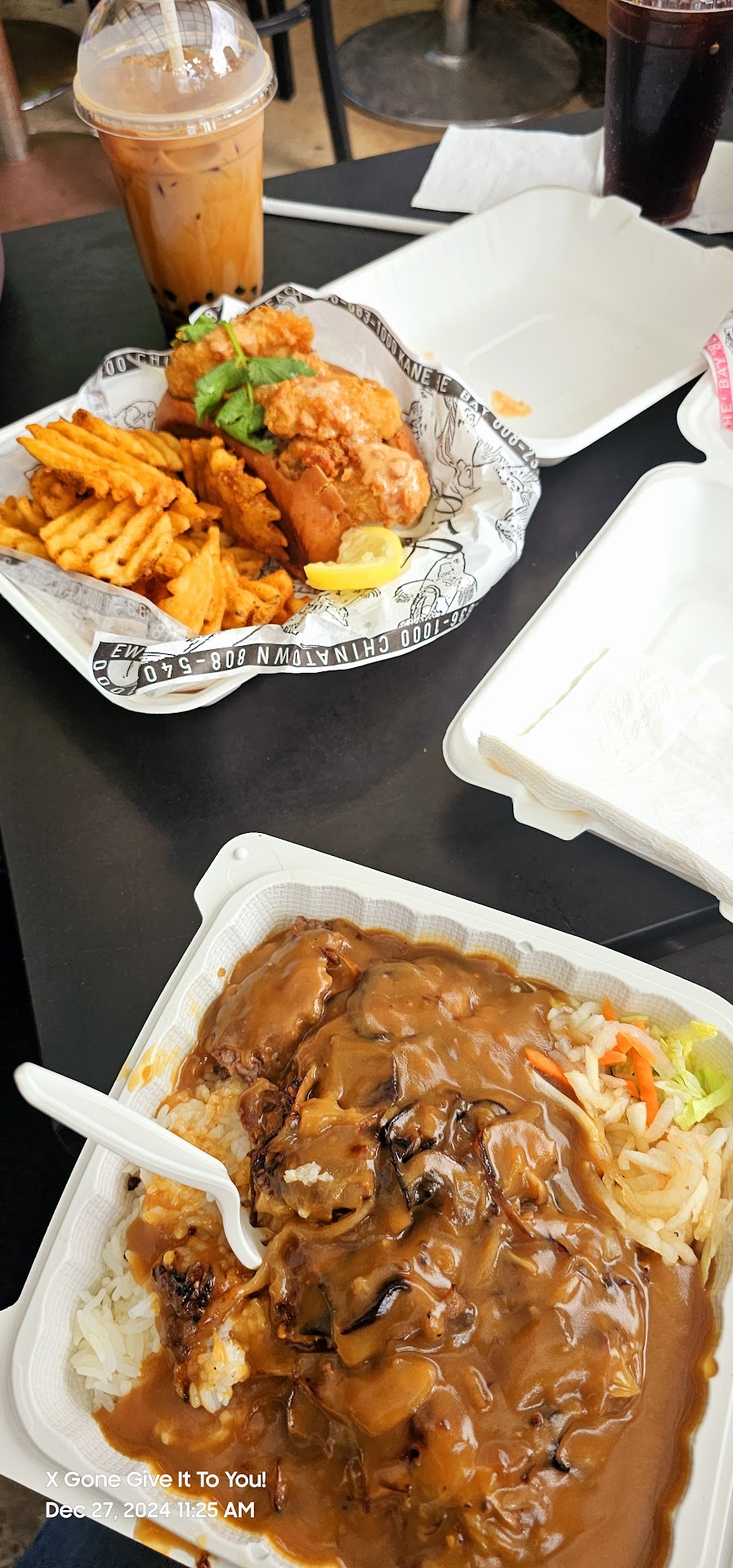 Ā Ā Ā Read moreFirst time here . We ordered a bunch of stuffs . Mamas meatloaf moco, lobster roll and a burger and also the smoke candy pork belly . The moco wasnāt your typical meatloaf idk the color inside was too pink for my liking lacked flavor and seasoning it was bland for me . The gravy and the jasmine rice was good the portion was good . It was served with coleslaw ( I wasnāt a fan for it ) I wouldāve liked Mac or potato salad served with it or no salad . The pork belly was okay . The lobster roll was too fishy for my taste Iām not sure what it was but it smelled funny . The bun was nicely toasted and they was generous with the butter . The chowder was really good with the roll . Not sure what type of burger my husband got but he said it was okay . Everything together came out 83 dollars . Price was crazy , I wouldnāt want to order here and spend a lot of money I guess my expectations was high. Overall...