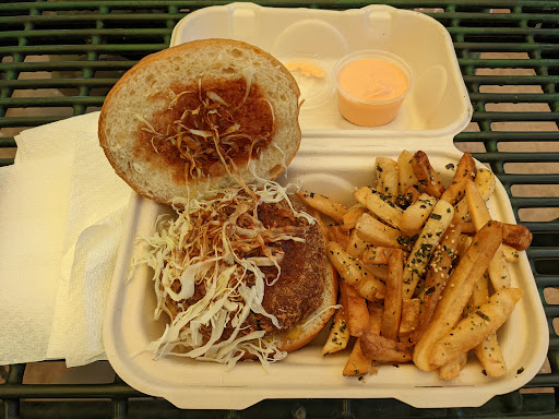 I must say the Wagyu katsu Sando is the TRUTH, the crispness of the crust around the burger gives it a delightful sensation when biting into the burger. The burger itself was incredibly juicy and moist all the way through, it was so good 👍. The bun was the cradle to its awesomeness keeping the burger from falling apart and soaking up all the flavors from the juicy burger. It was totally worth the price. Secondly I tried the curry fries and wow, just wow these fries are the best, they compliment and go hand in hand with the Wagyu Sando burger. The only regret I had was not...
