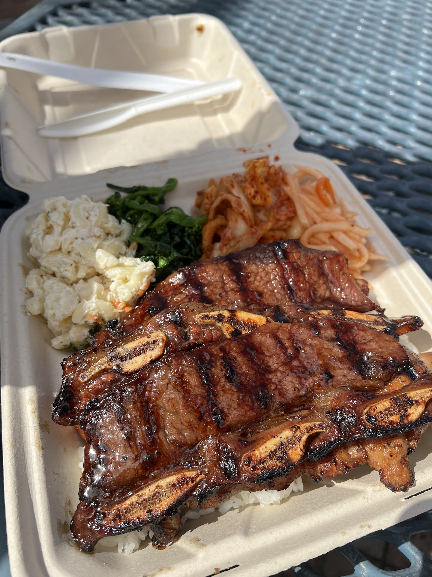 Read moreSO GOOD DID NOT DISAPPOINT!!!! Truly one of our favorite meals we have had during our 2 month stay, best Kal Bi beef/bbq chicken on the island and best we’ve ever had- we know Korean food well. We ordered the number 10, love that you can choose 4 sides. Sabrina at the counter was so helpful and gave us sauces. We enjoyed our meal on the picnic tables next to the marina. Thank goodness Kona had a line, we agreed Kim’s BBQ was way better than whatever Kona would have served. 10/10 and...