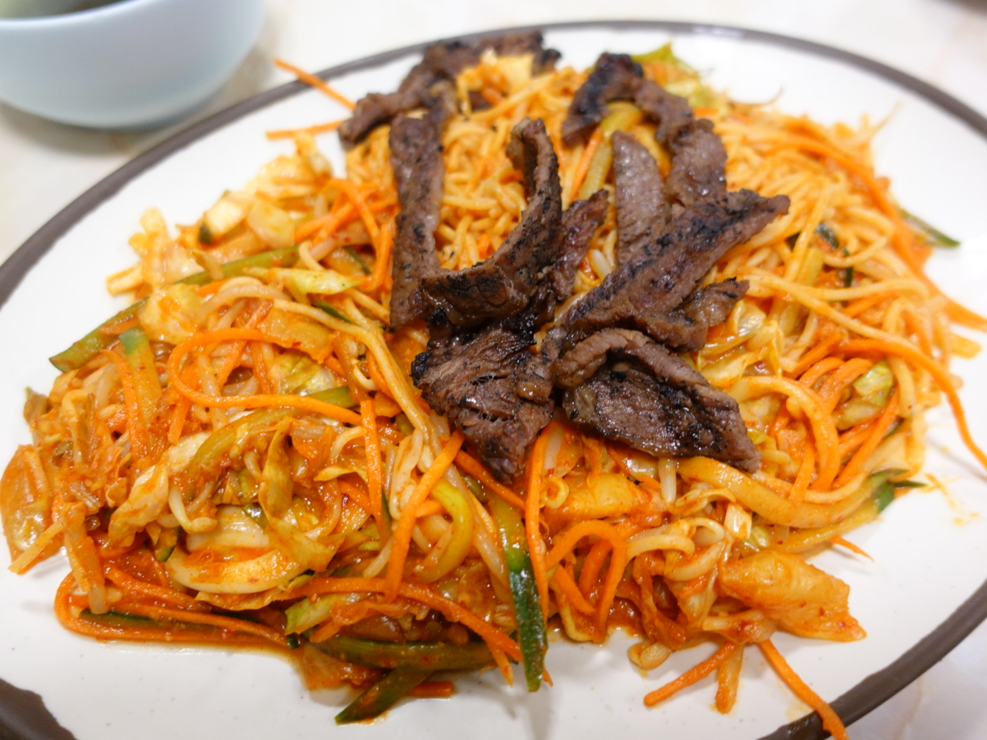 The recent visits I got to try the Meat Jun, Chicken Katsu, Bi Bim Kook Soo, L.A. Kal Bee, and Mandoo. -Meat Jun is pretty good. Not too high batter-to-meat ratio. It is soft and fluffy. -The Chicken Katsu was crispy and lean! No fatty parts! -The Bi Bim Kook Soo was very tasty, spicy, and wonderfully diverse. Don't understimate as it is a good amount of spicy and has really delicious kimchi pieces. (It's different kimchi than the side dish they serve.) -L.A Kal Bee was good! Very tasty and great grilled-taste. Not too salty and has a smoky flavor. Like a kalbi, there was a little bit of fat and the texture wasn't fall-off-the-bone but it still was tender. -Mandoo as an appetizer was so big and tasty! These mandoos were huge and they were stuffed with pork, chap chae, cabbage, and other veggies. Ho my goodness - be careful of these as "apps" or "sides" because you might just get filled up!