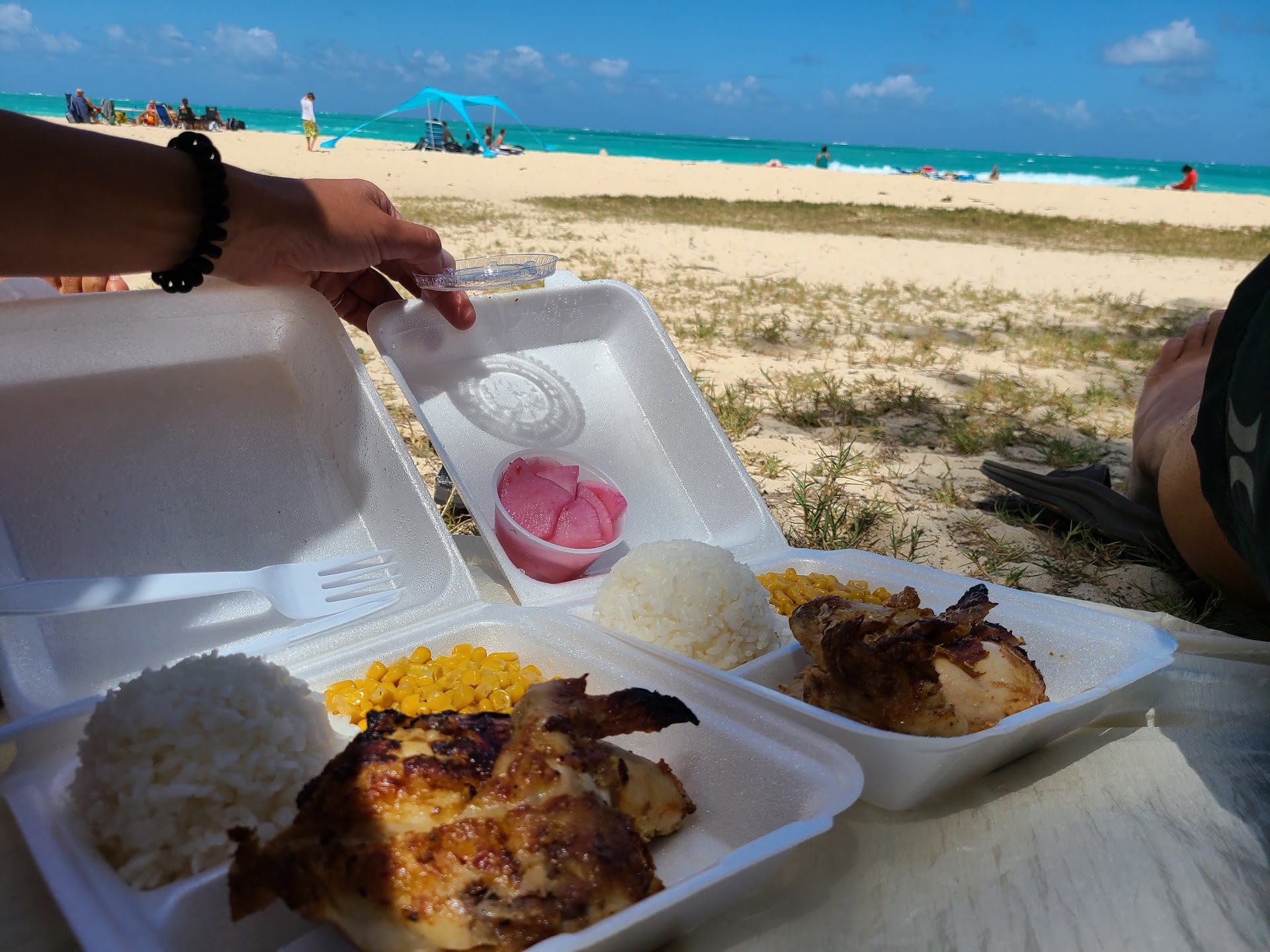 Read moreHole in the wall place. Drove by many times and my impression was a pottery/nursery business from the outside. Owner(s) is/are hoarders with alot of non-senses stuff piling outside the premise. Wouldn't say the best chicken on island but does have a char broiled flavor. Taste not what I expected of huli huli chicken in the past growing up on the island. Ordered large plate (half chicken) and for $4.5 to order additional quarter of a chicken is not worth price as it's up to owner's discretion of giving you either the wing or leg quarter. Wouldn't come back to this place...