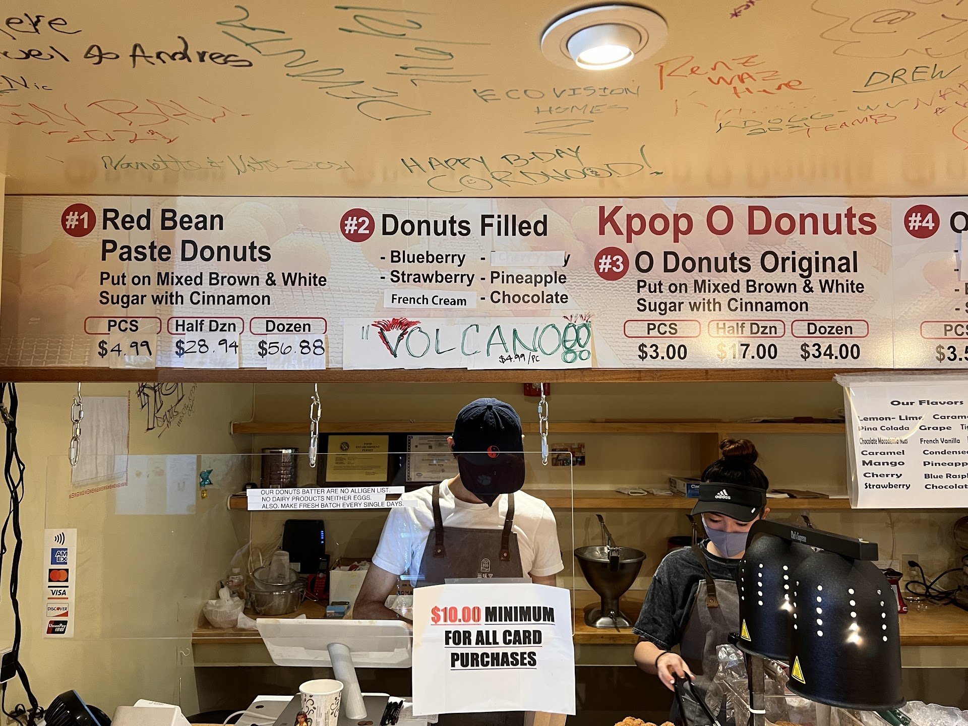 Read moreDisappointing experience. We were excited to try Kpop donuts after passing it by several times while out for activities. As we entered we were blasted with static ridden music from a stereo in the front room - ironically not K-Pop... The music was so loud, the staff could not hear each other or the orders they were taking. The store was out of smoothie supplies and multiple flavors of donuts filling at 7 in the morning. The sample cinnamon twist was passable, and we ordered a couple of "O" donuts. We watched as the staff of three struggled to fill the orders of the 3 people ahead of us, the production person was bringing out "O" donuts one at a time. The cashier who was also handing out the product was confused constantly by the the other 2 staff members, and the person filling orders was trying to read tickets rather than listening for customer orders. While we were there, the average order was 2-3 donuts, and the wait time was about 5 minutes with the donuts already prepared in baskets in front of them. I would hate to see what ordering a dozen would look like. The donuts themselves were undercooked and chewy. My wife didn't even finish hers. Definitely not worth the $3.50 price tag per donut. We chalked this one up as a loss. If you are looking for decent donuts in waikiki,...