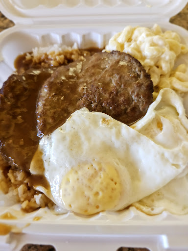 The menu consists of a variety of Island favorites and great combination plates. I opted for the Loco Moco Breakfast. The burger patty was good, moist, grilled, and seasoned well. The gravy was light but could use more beefy flavor. The over-easy eggs were perfect. The gravy, burger, over easy eggs over rice are delicious. The Macaroni Salad was tasty and freshly made. Generous portion, the regular combo could easily feed two people. For the price, it's worth it.