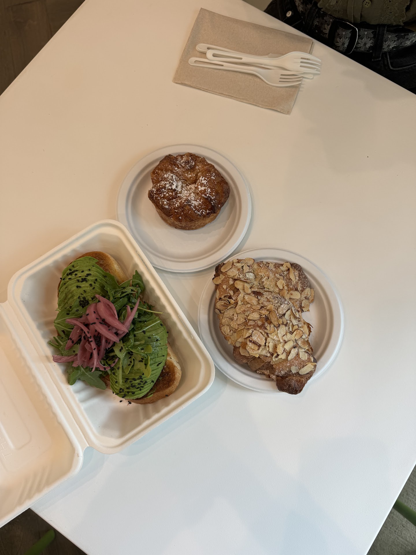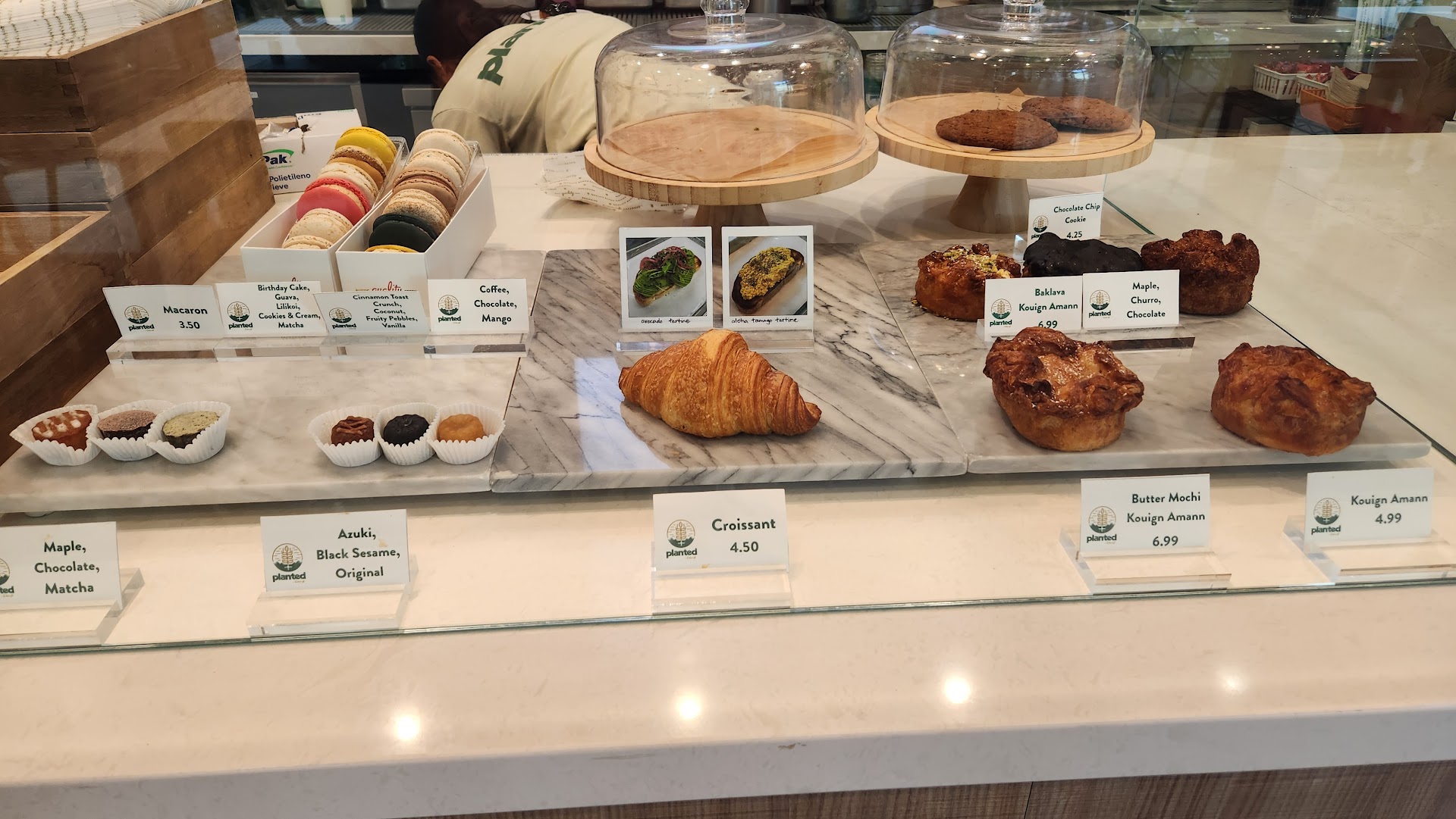 I came here for brekkie and split the avocado tartine, almond croissant, and butter mochi amaan with a friend. Everything was TO DIE FOR DELICIOUS 🤤wish I could come back for lunch bc the sandwiches and other items look amazing. The tartine is this beautiful piece of thick savory bread with generous avocado and pickled (onion?) and some greens. I honestly got full on half of that and half the amaan (warm flaky, gooey, crunchy, sweet — all at once somehow??), so I barely got to eat my almond croissant portion (saved it to go). Could not recommend the place enough. It’s a small interior with nice glass windows facing the tables so it was a very tranquil morning and vibe. The employee we spoke with was extremely patient and kind, and helpful with describing the options. Genuinely sad to have only found this my last day here bc I’d love to try the grilled cheese and soups. HIGHLY RECOMMEND to my fellow plant-based friends AND non-vegan friends...