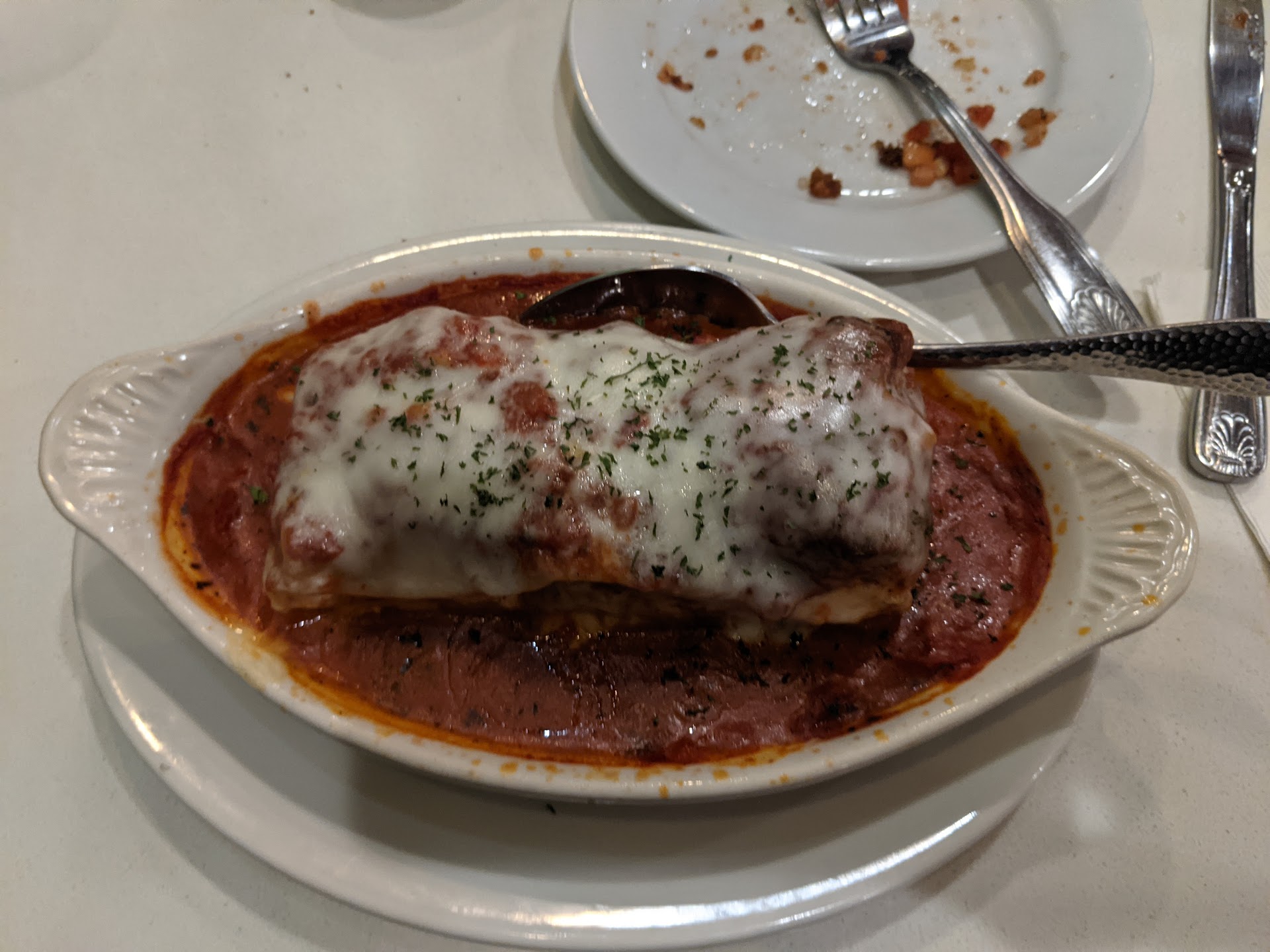 Food: We split a delicious chicken piccata (there was plenty for two) and a fresh garden salad (there was plenty of that as well), and the tiramisu dessert was excellent.