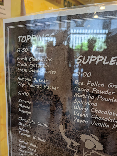 Read moreWe got the fresh juice and the acai bowl. The juice was good, but the acai bowl was not as expected. We got the large bowl and the acai mix was filled to the top. There was some granola and coconut chips, and a layer of banana and CANNED pineapples!! except for the Super food smoothie, there weren’t too many toppings on the others - or cost about $2 for adding in. All in all pretty disappointing! While the taste was decent, I would...