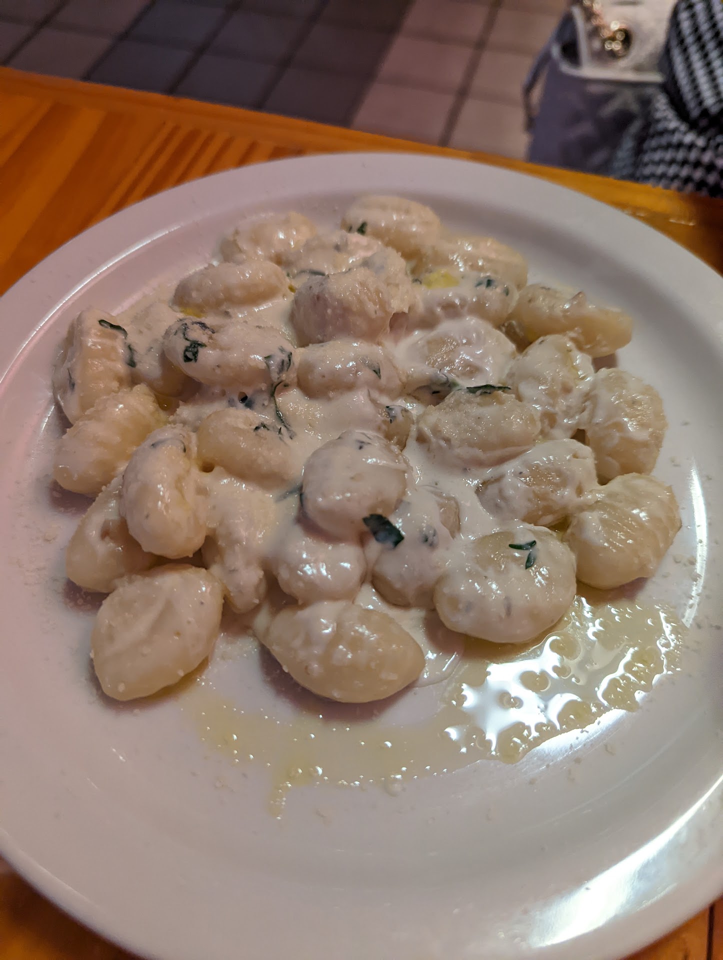 Read moreBusy little place. Basic seating, and furniture. We got seated, and placed our order. A young couple come in and said they were in a hurry, so ordered as they say down. Then a couple were seated next to us. Small oriental waitress was running around serving everyone. We were brought some plates (nice pattern). The couple next to us had a brishetta placed on their table. We had ordered first and had brushetta as a starter, so I wondered if it was ours? Anyway, they ate that. The young couple had their food brought out. Some people paid and left and the couple next to us had these mains. A guy with an Italian acce not was doing some serving and chatting. The owner? We were getting pretty fed up with waiting now and I managed to catch the waitress, who looked at us nd our plates with a confused look, as if it was the first time she had seen us. She went to the bar and there was a frantic discussion with the barman and owner. They told us our order hadn't gone into the kitchen. They would do it quickly. We soon got our brushetta. The couple next to us paid and left. We had taken one bite of our starter when they brought out our spaghetti bolognese . My wife sent it back. We wanted to enjoy our starter and our wine and have our main after. It wasn't a race. The good was ok. We finished it and got your bill. As we left the young rushed couple were still sat there chatting, having finished their meal an hour ago. If you go here, tell them you...