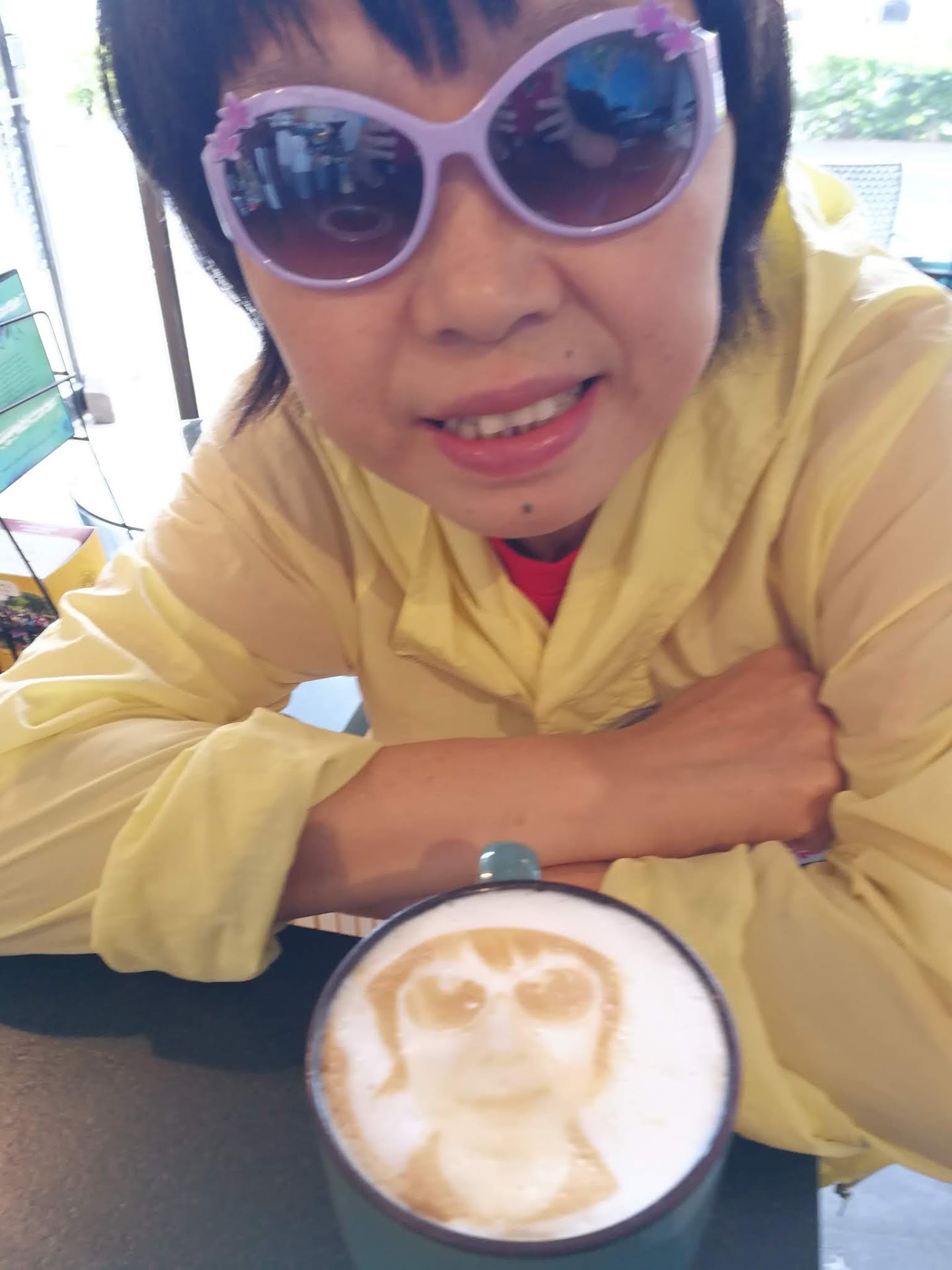They got this very cool machine that takes a photo from a phone and imprints it on the foam of a latte. We have lots of fun bringing guests there, snapping their pic and then have the a latte served to them with their image. Its a riot.