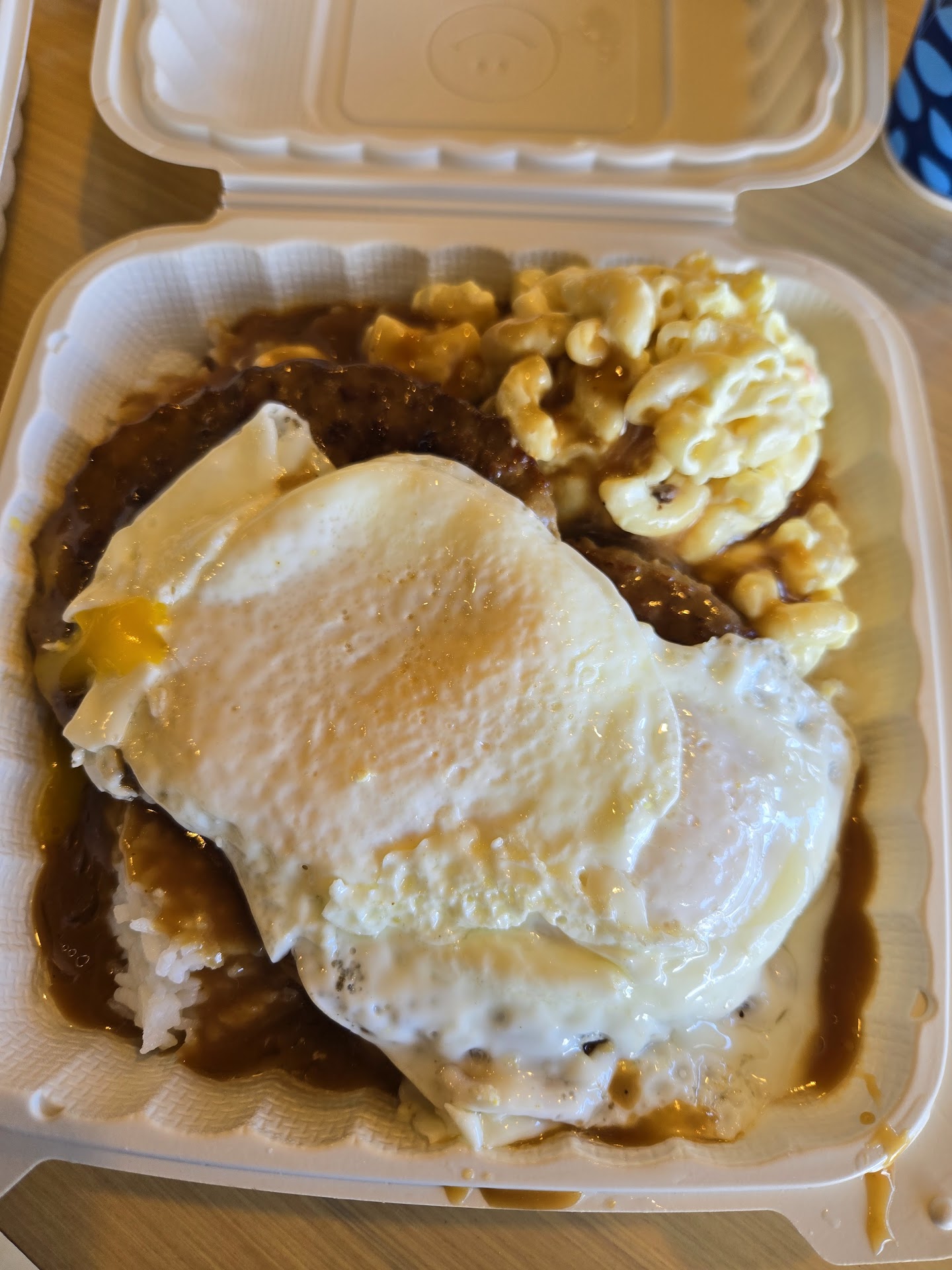 Only rating food since I ordered online. The description and price for the "loco moco" item menu is completely misleading. Price says $13, 2 eggs, 2 hamburger steaks, and macaroni salad, all over rice. The default choice is a mini size, and "regular" size is an extra $6.00. JUST CHARGE $19 FOR THE REGULAR. Just greedy businesses being greedy businesses... Drink was regular size, can't mess that up so no complaints.