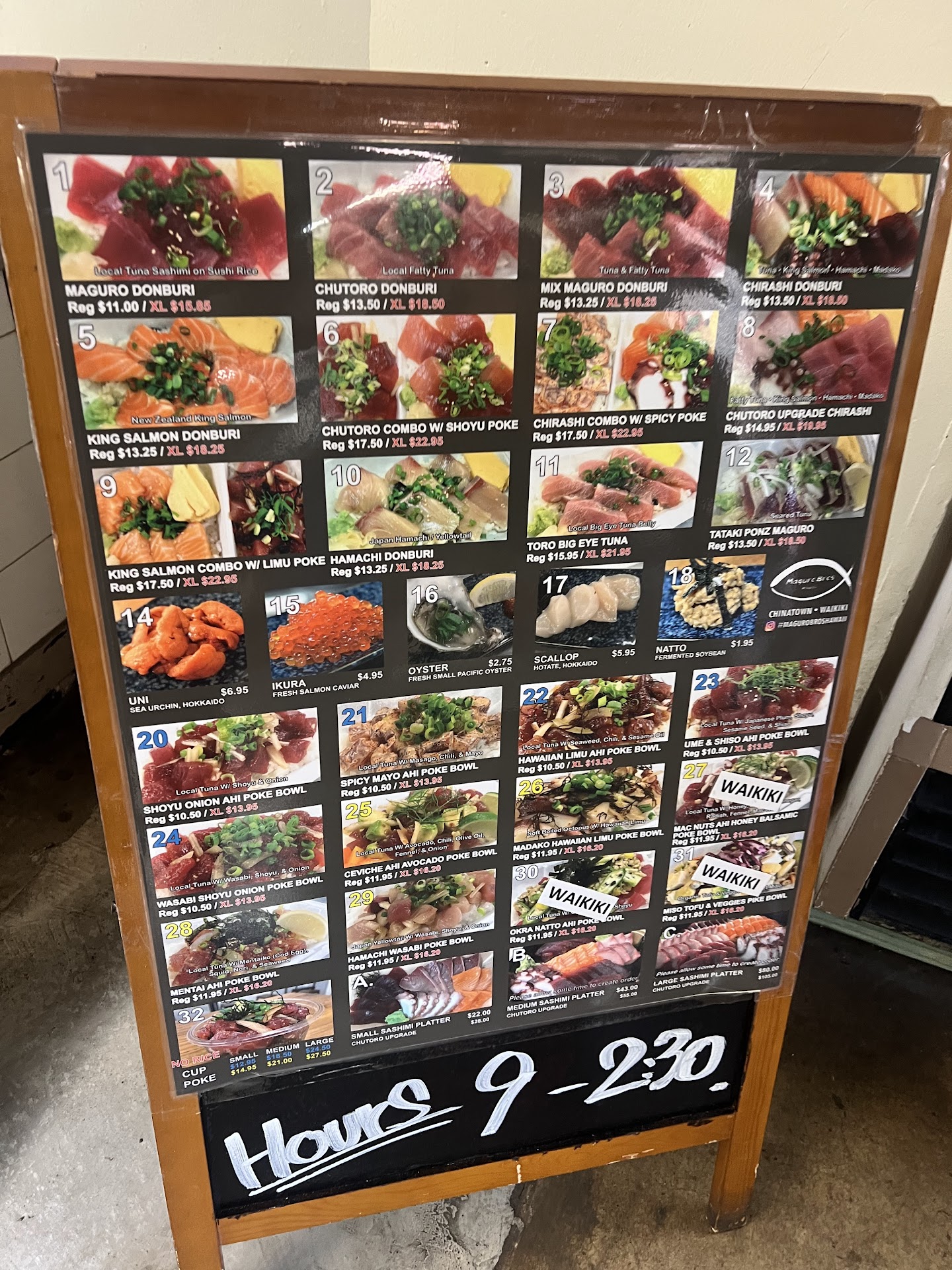 Read moreThe ultimate place for a person who loves both poke and sushi! It was so good that my husband and I ate here twice during our stay in Honolulu. I got the chutoro and spicy ahi poke combination and him the chirashi. We also got a side of traditional Hawaiian style poke. The fish is so fresh and everything is made to order. The Chinatown location is tucked away in the back of a wet market and so it isn't the cleanest place and there can be a bit of a line and a wait during peak lunch hours, but I personally think the food is worth it. If you're taking it to go, you can ask for your food to be packed with ice packs to keep it cold during transit. Compared to Ono's which we also had, Maguro Brother's has sushi options vs. Ono's which is more poke than sushi (although, I preferred Maguro Brother's spicy ahi over Ono's). Both are delicious, but Maguro Brother's is a must stop if you love sushi. There is also another location in downtown Waikiki, but that opens at 5 PM after the shop in Chinatown which closes...