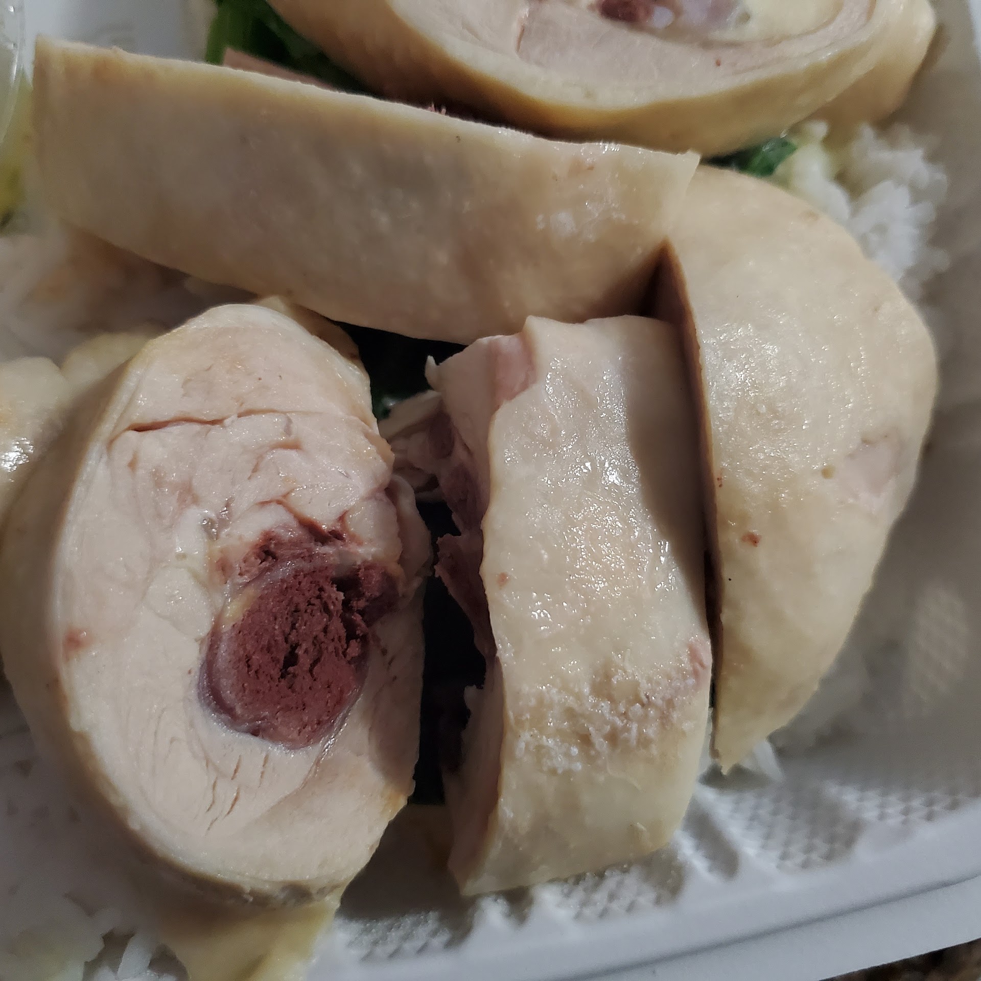 Main issue: I was craving for cold ginger chicken on rice. Ginger sauce was in a Togo container so I didn't pour it over my chicken, but the chicken already have weird smell, and slimy to the touch, one small bite, I knew it's old chicken. I went back and the cashier asked me if I pour the sauce over (pour the sauce over, you may not be able to tell the foul smelling). They said they would make me a new one. I told them with the chicken from the same batch? I don't want it. They said new chicken. I ate half yesterday, and was to eat the leftover today. Just opening the box, the foul smell exploded in my kitchen. Rotten. I called the restaurant to tell them to get rid of it if they have any left before they make people sick. Not acceptable. They intended to serve me bad food. The chicken today has pink/orange slim on it, slimy...