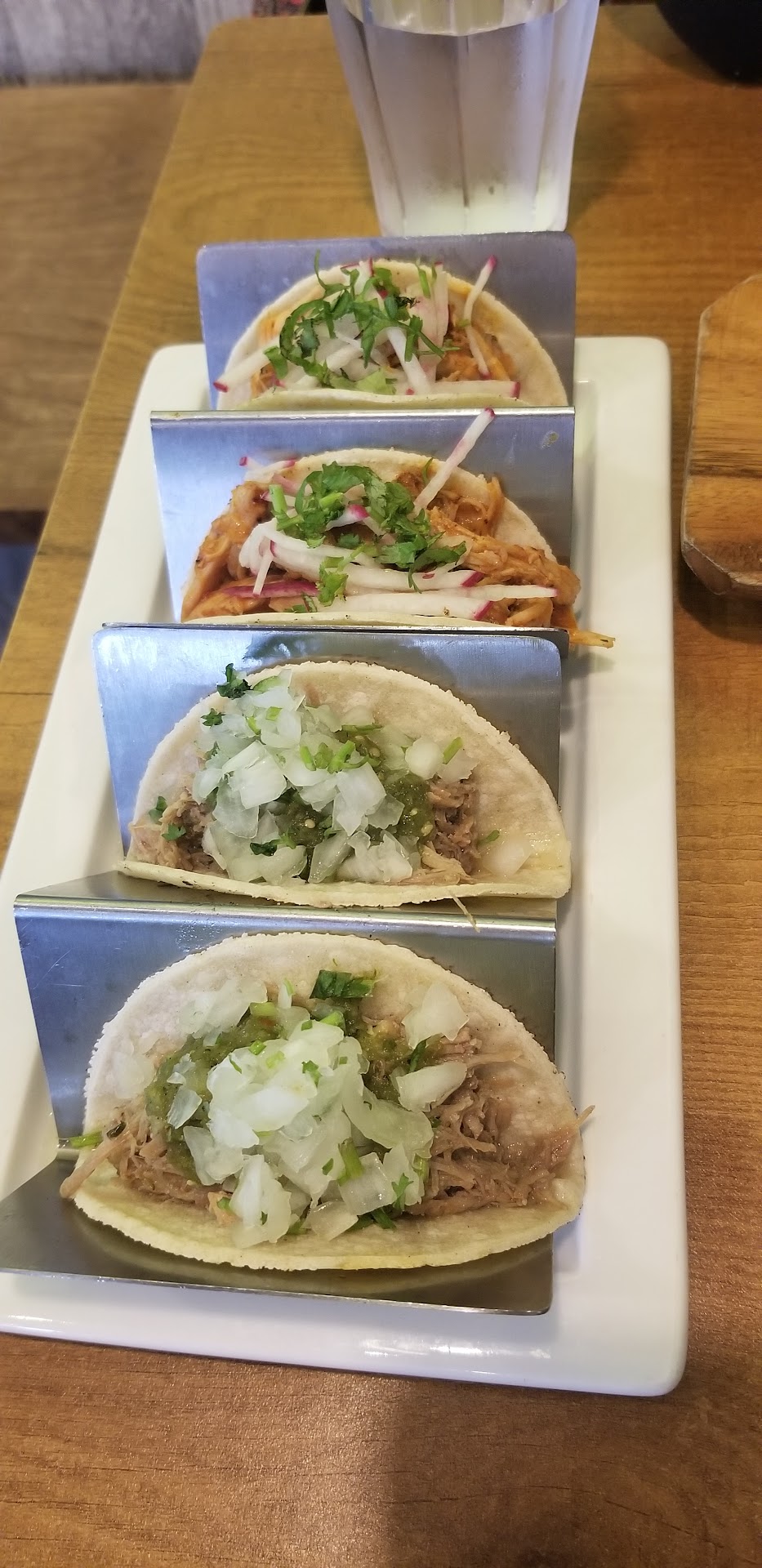 This place was recommended to me by some friends. Sadly, the food and service were disappointing. The place seemed to have a good atmosphere and several tables were seated, but there were a handful of empty ones also. I waited to be seated for almost 10 minutes with staff just walking by. When I finally was acknowledged, I was asked to wait so they could clear a table. I was sat, but that was it for the next 7 minutes. No greeting from a waiter. My waiter came by then told me the menu was online and to just scan the QR code with my phone and he’d be right back. Didn’t even ask if I wanted anything to drink. A few minutes later he did bring me an appetizer plate and a small glass of water and told me the kitchen was closing in 10 minutes so I needed to place my order soon if I wanted anything. He then left and said he’d come back. The online menu looked good and I’d made my decision. I put my phone down then sat for a few more minutes. I had to wave him down to let him know that I was ready to order as I was watching the time ticking by. It was now 8:50 and they close at 9:30. I ordered the chicken quesadillas and two beef tacos. 9:10 and the tacos were brought out by a different waiter. I didn’t get to ask about the quesadillas because they just turned around and walked away. I figured the quesadillas were coming soon. I ate the two tacos, but they were pretty soggy like it had sat for a bit before it got brought out. I was hungry, so I ate it nonetheless. The texture was right, but for being Mexican food, it was pretty bland. I would have put some salt in it, but there was none on the table. 9:23 I look up at my waiter as he’s passing by and he informs me my quesadillas are still coming. I asked, didn’t they close at 9:30 and why wasn’t it brought out with my tacos? He said they were shortstaffed in the kitchen and will check on the order. I informed him that it was already getting late and know they would be closing at 9:30. He said they could stay open longer if needed. I informed him it wasn’t necessary and if he could just cancel the order. I then then ask him for a Coke and the check. He asked if I still wanted the quesadillas. I told him no need. I rode a moped in and could not carry it. He did bring me the check and informed me he removed the quesadillas and didn’t charge me for the Coke. He did bring me a Mexican Coke in a cold glass bottle, which was awesome! It was the highlight of my meal.