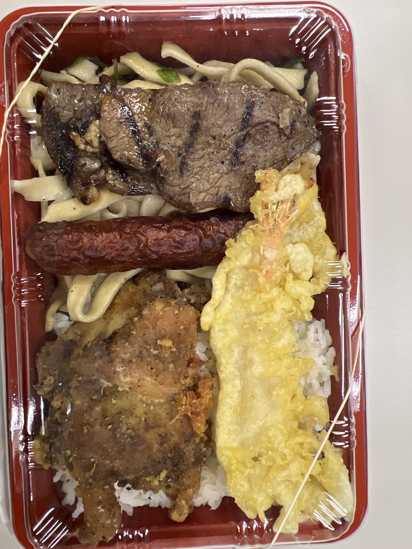 Chow Fun was a bit bland. Hoping to have a better taste... Ume Musubi was good! The touch of Ume was nice. Fried Chicken looks tasty however, seemed to lack flavor... And this was a huge disappointment! Teriyaki Beef was good! BEST item in this Bento. Shrimp Tempura, straight bready and oily. Comes with no sauce. Egg Omelette was better than most for a Bento! Hotdog & Spam is your typical!