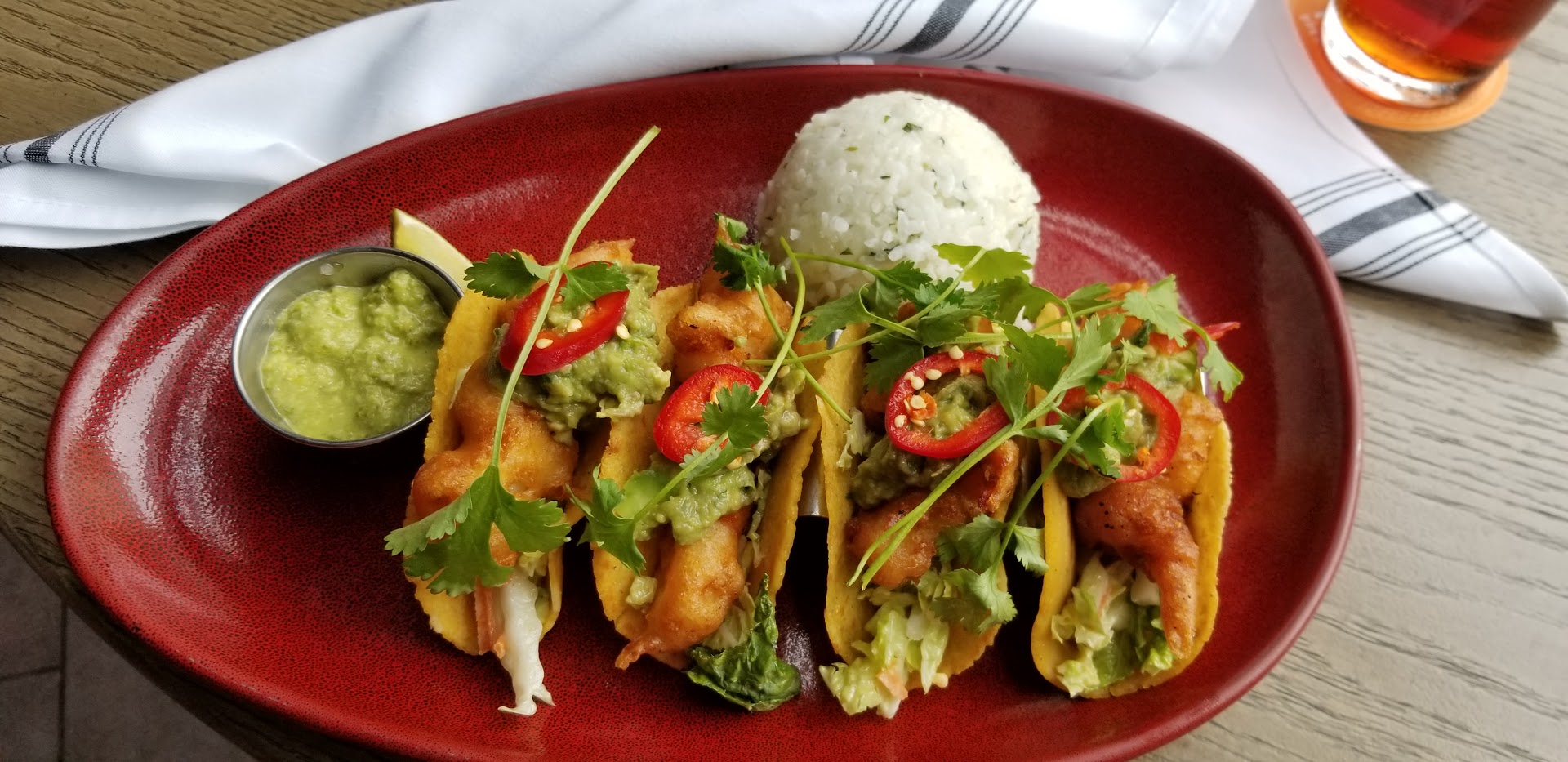 Live music began playing shortly after my arrival and the beauty of this experience leveled up tremendously. With the acoustical backdrop, a fresh iced tea, and the fish tacos (aka a tastebud extravaganza) before me, I set about destroying the work of art that had been served to me. Camera-ready tacos too pretty, too colorful, too wondrous to touch, and yet I was compelled to do my part to complete the interactive portion of lunch by supporting the ultimate purpose of the chef's culinary craft. I was not disappointed. Nor will you be in your choice to dine at Maui Brewing Co. Waikiki. So do it first, don't save it for last, because you will want to come back and try those nachos you saw someone order, or that other special that was mentioned. And bring friends, because happiness is always...