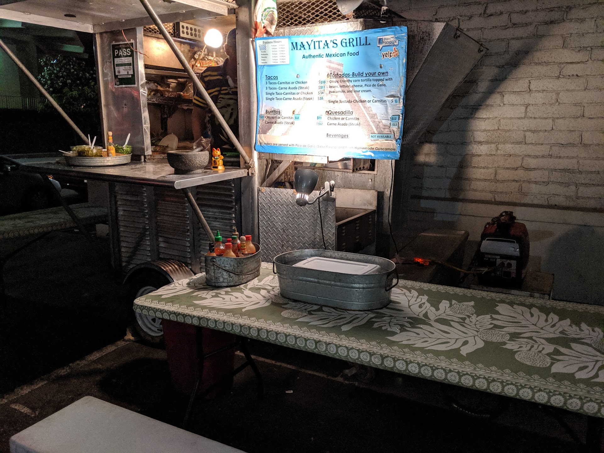 Ok so I read the reviews and a friend tried it and everyone said was good but, me and my boy have eaten Mexican food from Mexico, L.A., Beaumont, Texas, San Diego, Vegas and everywhere on oahu including Maria Bonita's, taco truck Hawaii and many other restaurants. Mayitas is probably the worst we have had, he had the carnitas and chicken tacos, I had the chicken quesadilla. His tacos was not good according to him and my quesadillas was very shiny like to much oil or butter and just a single flavor, couldn't taste the cheese or meat. He was a nice guy though!