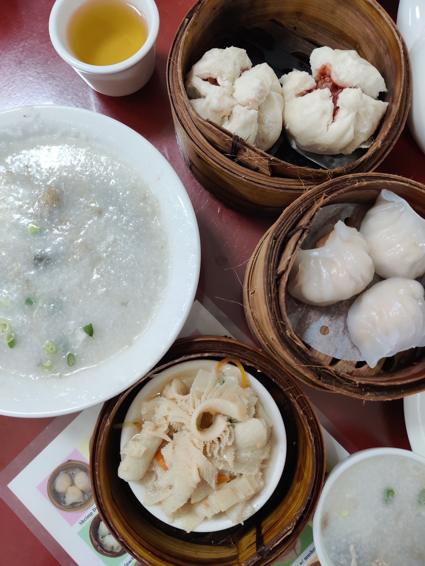 My favorites and must haves are as follows: Spareribs, Siu Mai or Shumai aka Porkhash in Hawaii, Shrimp Dumplings, Steamed Look Fun, Chicken Feet Tripe, jellyfish, Fried Garlic Eggplant, and of course Egg Custard for dessert. Of course there is a full menu of Chinese classics you can order from if you need something more. We like to get a plate of Choy Sum with Oyster Sause for some veggies and sometimes some Crispy Fried Noodles with Seafood if feeling hungry.