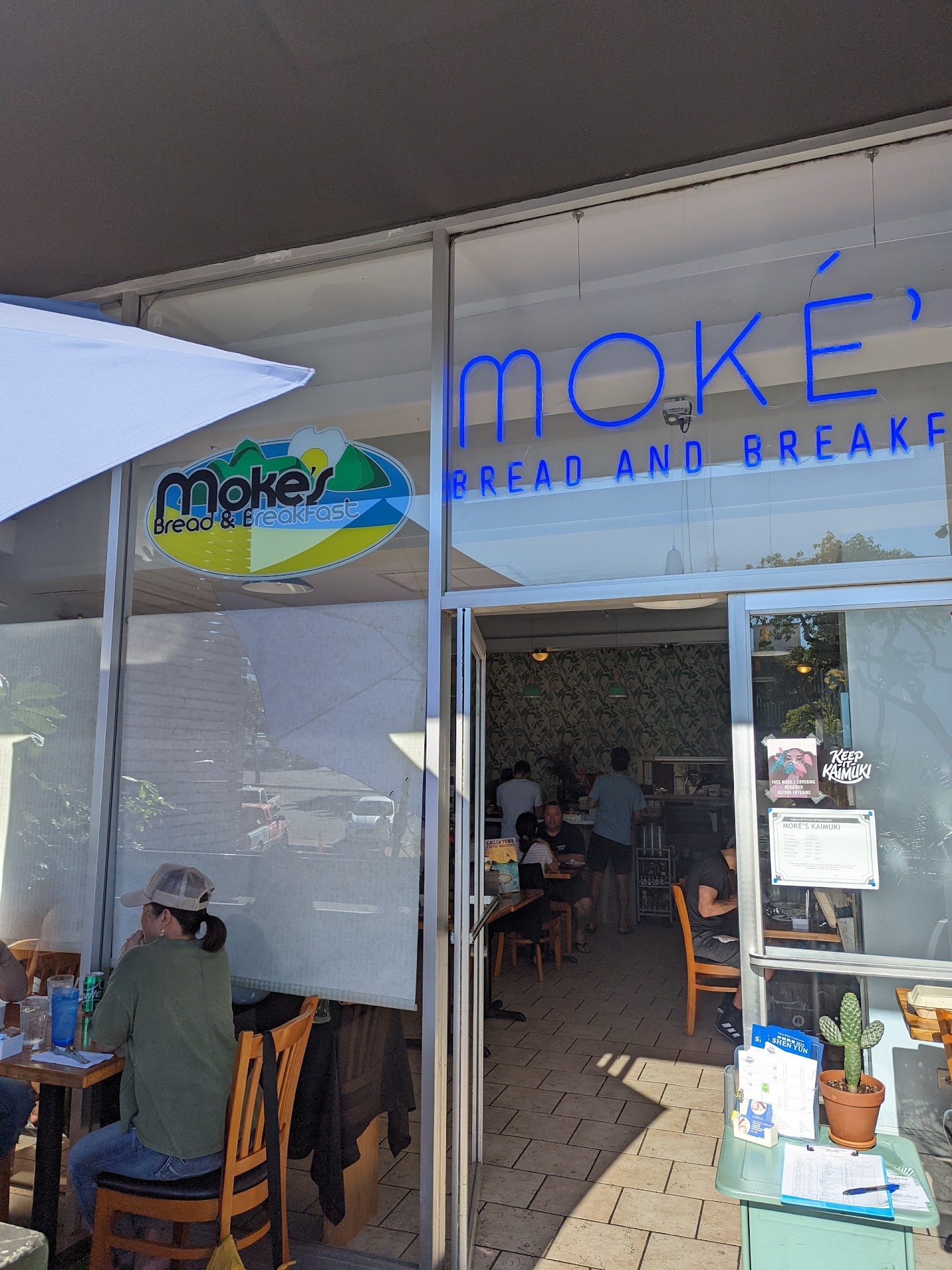 Read moreThe food is wonderful, homemade and very tasty. The bread is fresh and wonderful. I had the dark rye as my choice for breakfast. It is a delicious bread rarely found in restaurants today. The owner is out in the crowd, talking with people, and in the kitchen helping. Having been in the restaurant business for nearly 15 years, I am impressed with the hands on help and the importance that he places on supporting staff and getting to know his guests. You can tell how it also serves as an example for his staff, genuinely friendly and polite. The prices, especially in our current price increases in most restaurants are surprisingly lower than most any other breakfast/lunch restaurant. The atmosphere is really homey, nicely painted with beautiful photography prints on the wall. We arrived at 1 pm and the wait was less than 10 minutes, a very reasonably short time for a Sunday. The restaurant was very clean, especially considering over 6 hours of heavy weekend guests. I had their special omelet and found it very good, fresh ingredients and rolled over to appear like a burrito. The eggs cooked just right. They had run out of their special hash browns so I opted for garlic rice, nice crispy dark garlic topping the rice. ( By the way, they have more choices on starches and or greens that most restaurants. Even though the atmosphere was overall great, I did give it a 4 rating only because it really was quite noisy inside, and that's to be expected in older buildings that are all concrete and no sound barriers such as false ceilings etc. I, myself, don't mind noise when dining because it really has been a trend for the past 25 years, especially since the open kitchen became a concept. However, it was difficult to carry on a conversation for the first part of our visit. Overall, a fantastic spot and a wonderful owner and his team make the experience and food quality above expectations. If you've never been, I recommend you go. I'll be going back during a weekday to try some of their lunch options also, especially the wonderful enter salads they create. Mahalo to our server and to the owner for a...