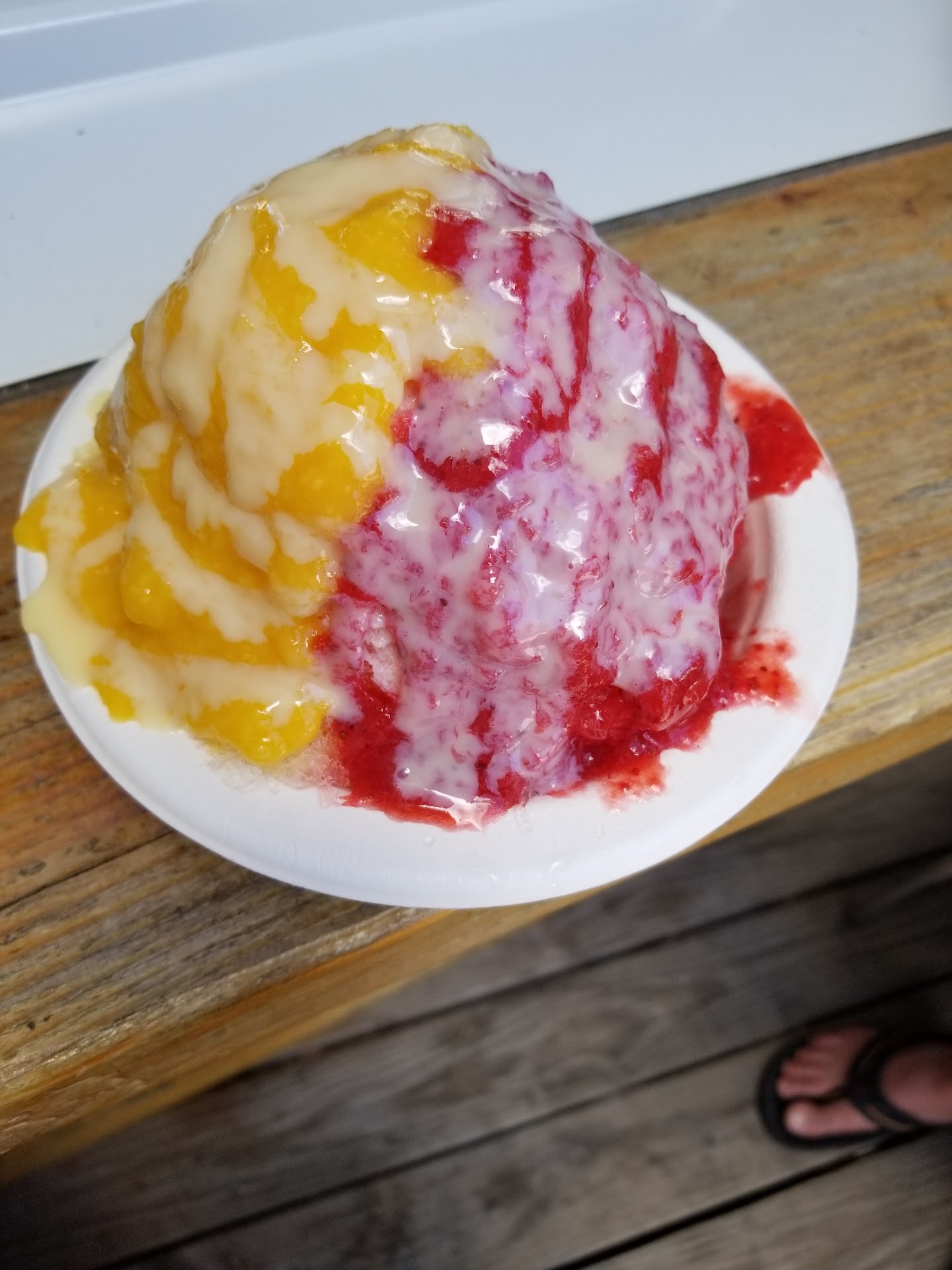 Read moreI've been meaning to try this hole-in-the-wall since our friends recommended it but always forgot it was only open on weekends. I got lucky finally and went on a Sunday after a beach day and this was the perfect sweet treat to end the trip. I love how they use fresh fruit puree that isn't too sweet (order condensed milk as a topping if you like sweeter syrups!) and their fresh mochi had a fantastic bouncy texture. The yuzu flavor in particular was one of the best yuzu toppings I've ever had- totally had that distinctive yuzu citrusty aromatic flavor and the tartness was perfectly balanced with sweetness. The strawberry and fresh mango were quite nice as well. As far as shave ice goes, this feels so healthy and refreshing. The older lady working is very sweet and takes her time to make each bowl with care, so don't come in a hurry. Looking forward to trying...