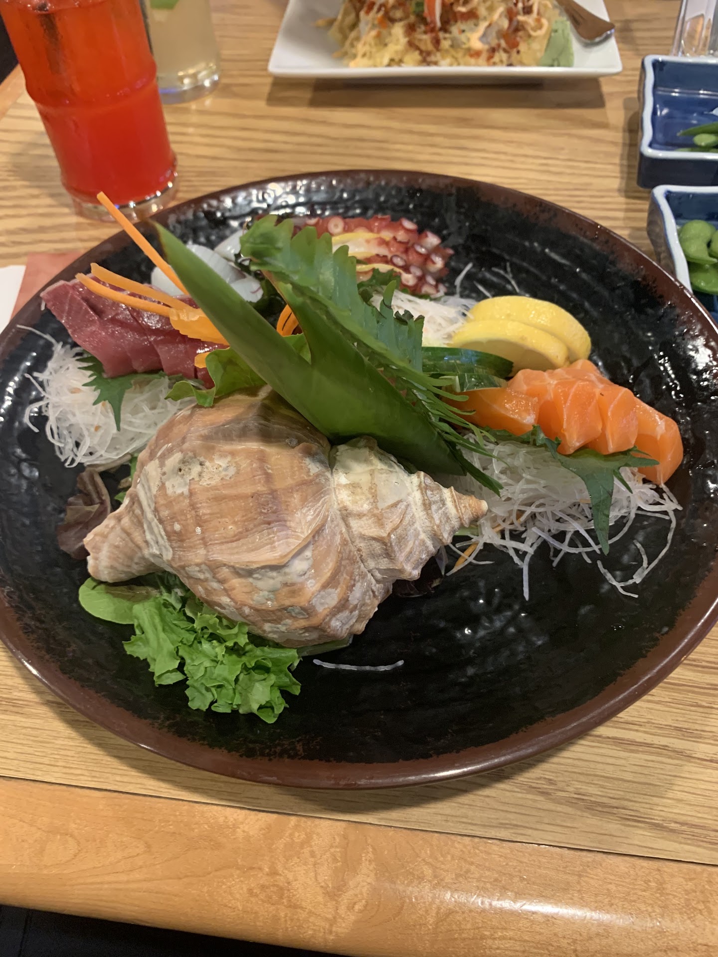 The food looked great. We had the sashimi platter and the sashimi was cut nice and thick. There was four pieces of each type and you could taste the freshness. I had the ahi belly and it was cooked and seasoned perfectly. My girlfriend had the sushi roll and it did throw us off at first as we were expecting a traditional roll, however, this did not disappoint. It was really delicious and crunchy. There was some heat in this with the sriracha drizzle but nothing a little water can’t take care of.