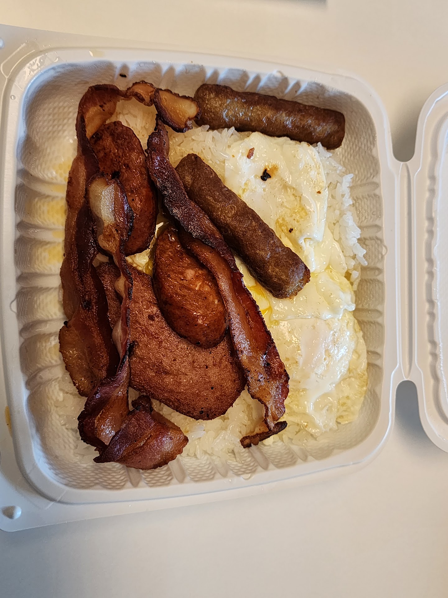 Read more6/2024 Haven't been here in a long while and was strolling through the neighborhood while waiting for something early. They open at 5 am. No one opens this early anymore, and it's good to see for a lot of early risers and construction workers. Simply, you can not go wrong with the prices. Higher but still a little old school. Nice lady in the back servicing and cooking with help. The breakfast special caught my eye. Two eggs, two scoop rice, one spam, 3 bacon, and two Portuguese sausages for $8.39. Thank God this kind of place still exists. It's not gourmet but certainly fills the stomach and the local soul. The lunch menu looks good, too, where you can still find shortribs for under $14. Nice to see, and a gotta...