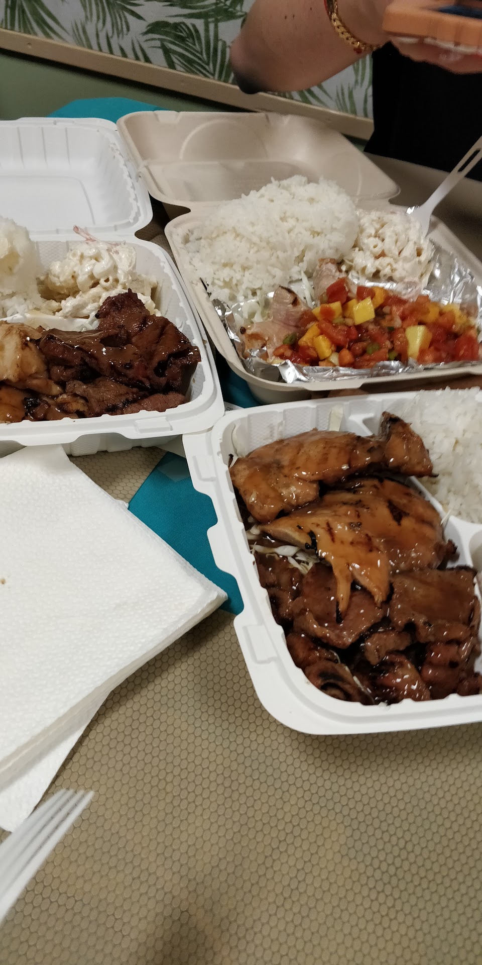 What you gonna say this is a takeout place and the picnic tables out front and the counter at the window is where you can pound your plate lunch and poke so that’s what I did and Boy! Did I enjoy the food! I had the Combo with pulley neat and mahi mahi. I also got the spicy garlic poke and a small tub of the imitation crab salad. First the crab salad is FIYAH! I can tell they’ve taken the time to perfect it. It’s so ONO! Take some home and stuff some fish with it! The Garlic spicy ahi Poke is MENTO GOOD! Plus NO Mayo and Sirracha which works for me. I’m old school save the Mayo for the Pork and Beans not Poke. As for the plate lunch I was skeptical about the Mahi with white sauce yet it was surprisingly still crunchy I could go for just a plate of it in the future because the mahi was juicy and crunchy too! My favorite item is the Pulehu meat it was tender and juicy and so good with the rice! I could taste the marinate in shoyu but I’m happy didn’t use sugar. I hate places calling their Pulehu meat/rib and they marinate in shoyu sugar. Truth is Pulehu meat is kissed with Hawaiian salt and nothing else. Fo”real Pulehu meat is supposed to be ONLY HAWAIIAN SALT. Add anything else and it’s teriyaki or kalbi. Hawaiian food is straight forward no garlic salt or shoyu. So Therese guys keep it simple hopefully consider making their Pulehu meat with just Hawaiian salt? No shoyu. I’ll be back here! My feeling was hurt because they post Beef stroganoff but they ended that. I I was them maybe bring it back for one day a week. I would like to try that with...