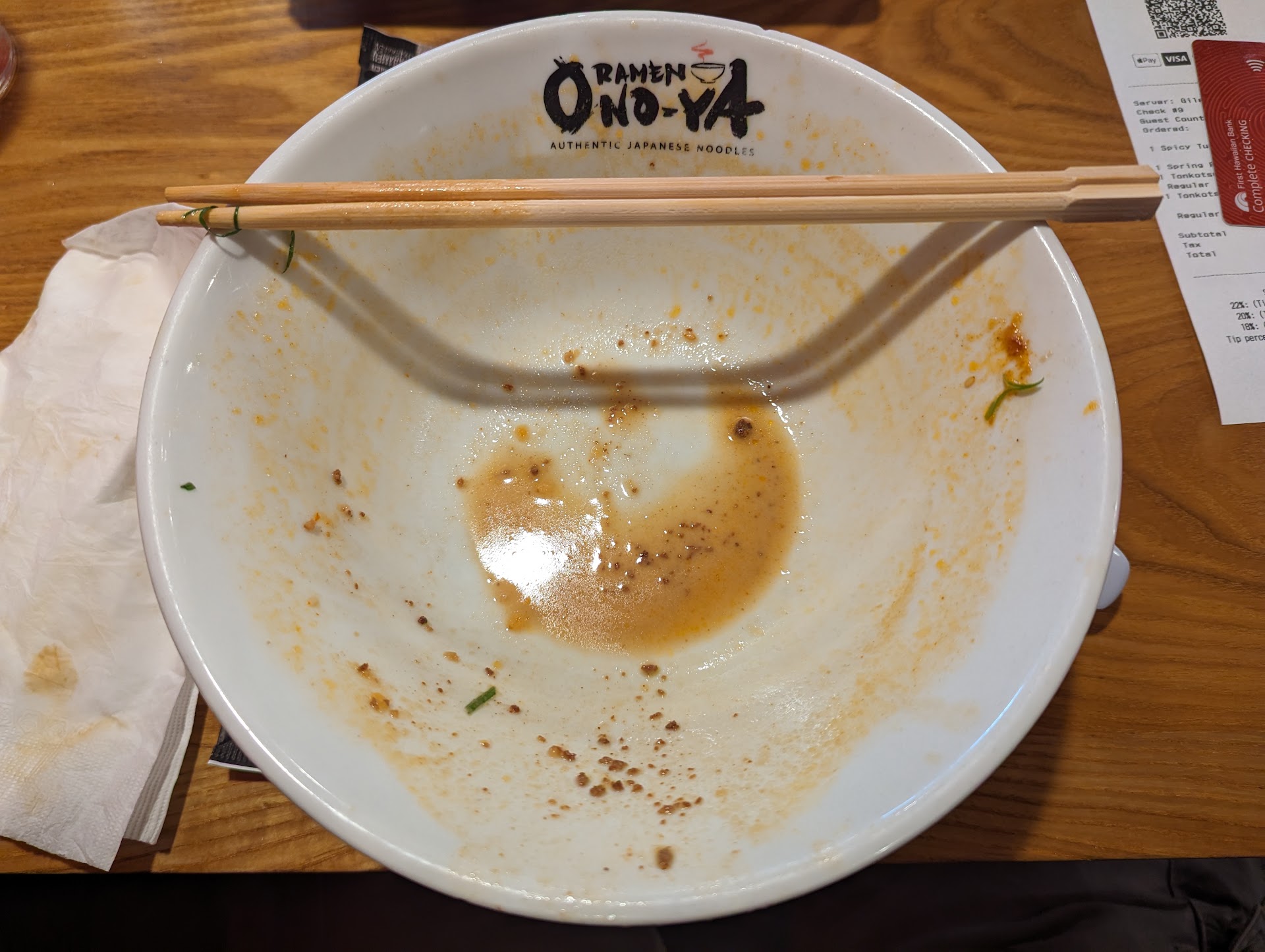Overall, we're very happy to see restaurants are at least giving vegans/vegetarians options. Veg ramen can be challenging as so much of the dish comes from the broth and sometimes a lot of creativity is needed for an amazing ramen experience. Onoya Ramen has good service and environment!