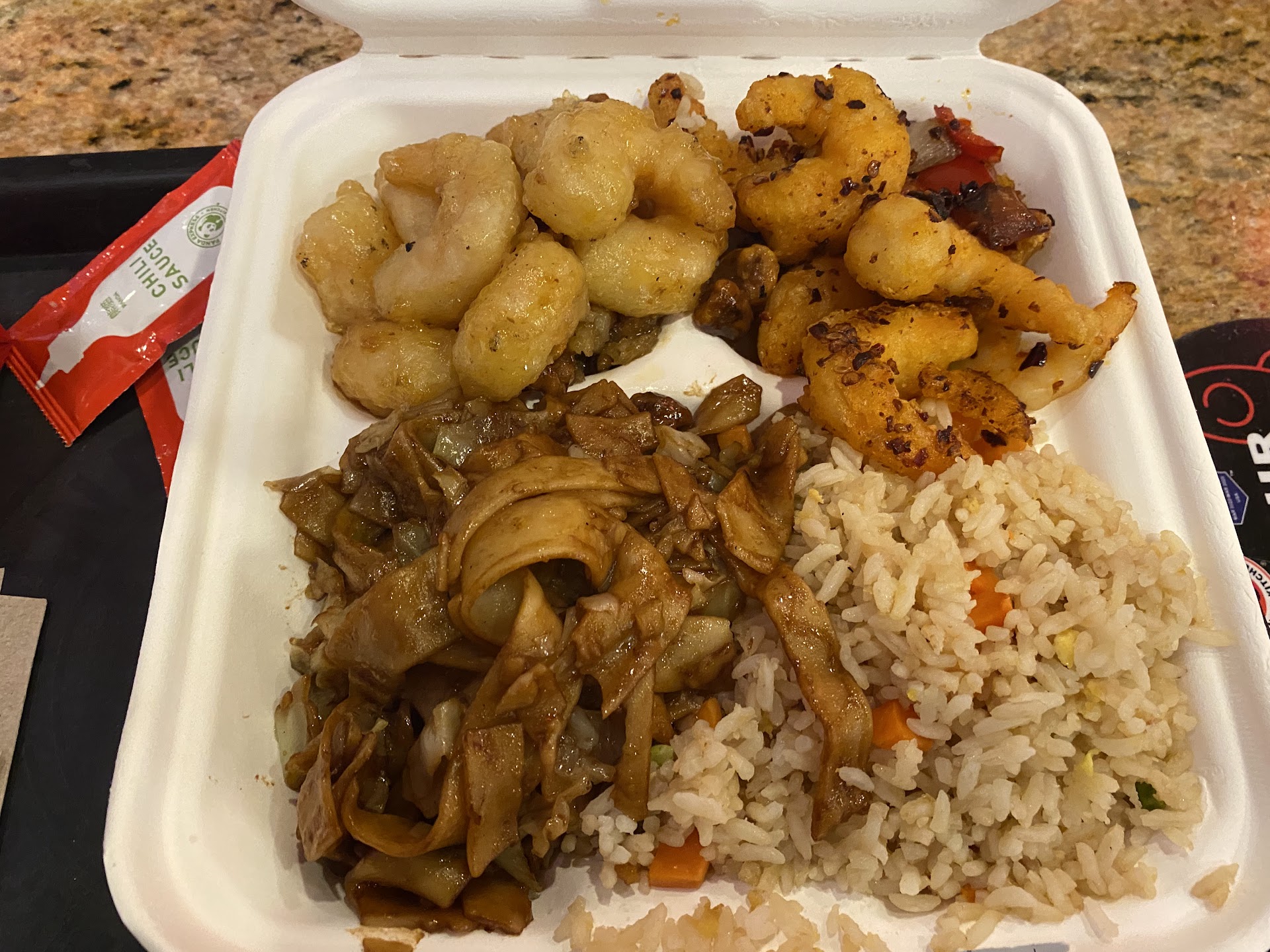 Read moreI stopped by and got the “bigger plate” which included three entrees. Went half and half on the fried rice and fried rice noodles. My go to entree is the honey walmut shrimp. That took care of my honey walnut craving. I also tried out their crispy chili shrimp. It was very dry and lacked flavor. I also got the tofu and eggplant which was served is a separate smaller box. This vegetarian entree was good. The service here is great. People behind the counter are friendly. Ample seating space. Parking is hard to get as the lot was full when I arrived for dinner. This is not a new issue for Hawaii. I parked on the street and walked a bit to the restaurant. Overall, good...