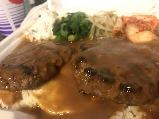 A couple of my go-to plates here are Spicy Pork and Loco Moco. Though the Spicy Pork does not meet my standard of spiciness, it's still flavorful. A regular plate comes with 3 pieces of broiled pork, two scoops of rice and four sides. All that for a little over $12. I usually eat half and save the rest for later. So I'm paying about $6/meal. The regular plates are pretty generous!