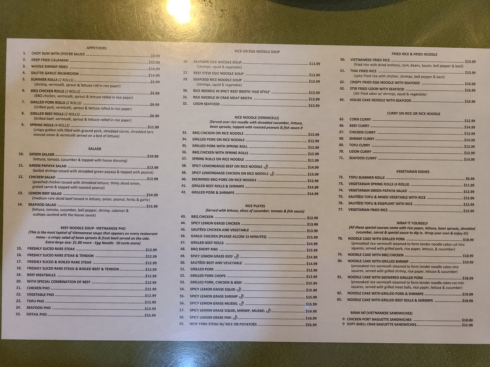 Despite the name of the restaurant, they have other things than pho. I had the green papaya salad, which was quite tasty, and I was happy with the beef broth of the pho I tried. They also have a number of other noodle options (and a couple of bahn mi) for those not in the mood for pho. We ate four meals and two beers for $80 (total after tax and tip), which in my experience is lower...