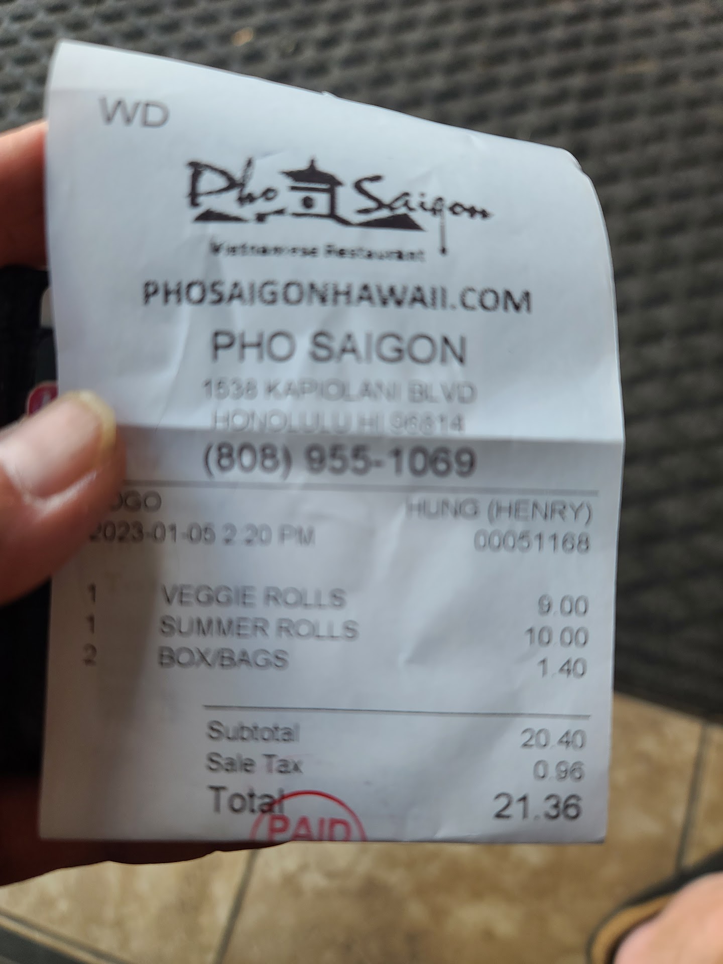 Read moreAloha, I’m usually not the person to ever do reviews or be negative about something, no offense to the workers or anyone, But I’ve been here 5 times, I love pho, I eat it all the time, however this place has to be the most stingiest place I’ve been too, if I’m paying $23 dollars to eat a bowl of pho, why do I only get 3-4 bites of noodle and it’s done for. You guys have to be generous with your portions, I always either get little bit of chicken or little bit of pho noodle. To the point where I order extra noodle on the side for extra $5. It’s really unbelievable how I come and show support to this lovely restaurant but get so little food. I think it’s unfair to pay $23 for a bowl of pho and you walk out still hungry. I think it’s unfair for any restaurant to do that. The food was delicious but not generous with their portion and that just shows a lot. And when I told the waitress she just said “ oh” This will be my last time going there. If you want delicious pho with generous amount of portion then go to Pho Viet Ala Moana. It’s down the street from this...