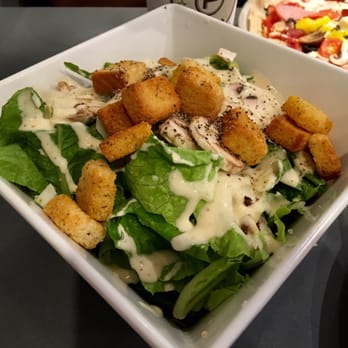 FOOD: Caesar Salad Like the pies, the salads are totally customizable. I thought they'd just make the salad with all the listed ingredients, but the worker was waiting for me to say what to put inside. Unfortunately some lettuce pieces were a slightly old & brown, and the dressing was a bit tangy to my liking.