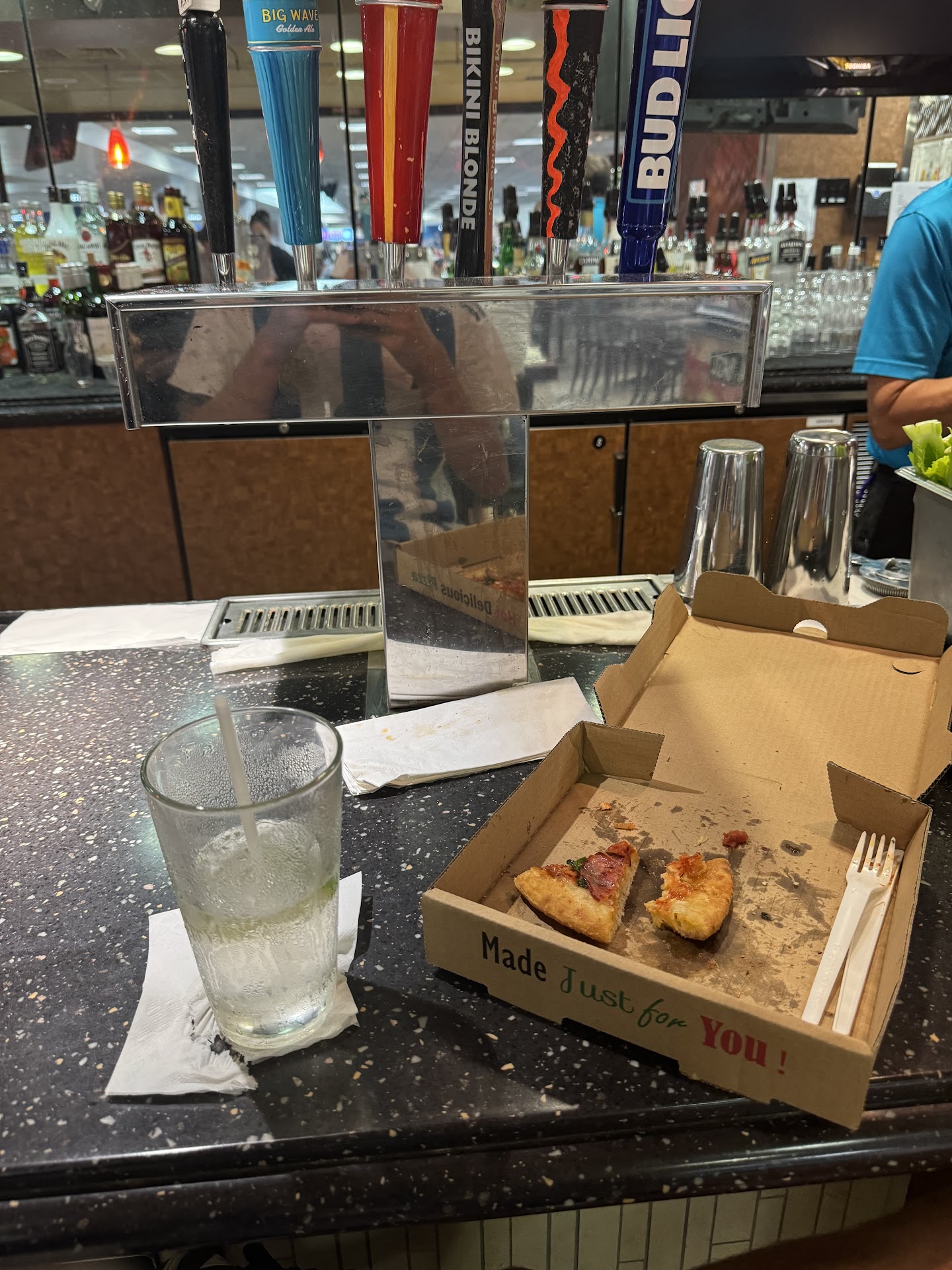The pizza shop dining/tables apparently were “closed”, so the server lady told us to move our luggage outside of their dining area to wait for the pizzas we had ordered and also told us we’d have to eat elsewhere. While waiting for our pizzas, she then opened up the dining space to new customers. Mind you, we were still waiting on our pizzas. She opened up the dining area literally 2 minutes after telling us we could not sit or eat in her dining space. It was unfortunate that we felt discriminated against. When our pizza was ready for pickup, she was laughing and being extremely loud and rude as we walked away with our pizza to the “outside” dining space. Never again. Be aware if you’re considering eating here, they’re very rude and judgemental with customers. I don’t leave reviews ever, but the way I felt after leaving this place, I feel it would be a disservice not to inform future customers of this discriminating customer service here at the airport pizza shop called Torn...