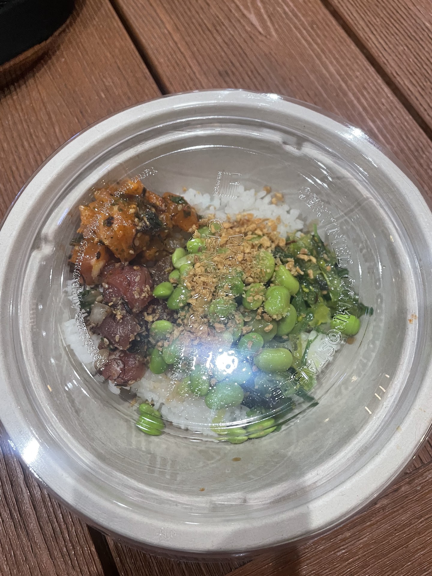 Kept seeing this Poke place by our hotel so I wanted to try it. Its kind of a build your own poke bowl or you can choose a signature bowl. There are two sizes small or large. You get white rice or brown. You can choose a side of imitation crab or seaweed or get both. It comes with the bowl. Then small has a choice of two proteins large has a choice of three. Theres vegetarian options as well for protein such as tofu. Then theres regular options such as classic ahi tuna, salmon, spicy tuna, etc. Then theres unique choices such as octopus. It was nice to see Albacore tuna also and scallops hard to find a good poke place that offers those as well. Then you choose toppings. They have different toppings such as cilantro, jalapenos,cucumbers, masago, etc. Then you have a few choices of sauces. Sweet chili and ponzu was the combination I tried very yummy. Finally they have a three fried options such as fried garlic, fried onion, and fukikare. Overall a very good sized bowl even the small was a good size. Everything tasted fresh and the flavors were spot on. Definitely my favorite thing I tried while in Waikiki. The staff was very friendly and patient if you had questions or indecisive. Definitely recommend you stop by if...
